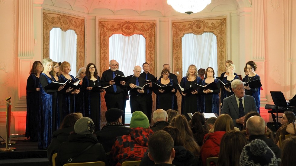 Iar la 14.30 am intrat în sala de concerte a vilei, unde am asistat la o scurtă reprezentație cu colinde de Crăciun. Pentru a mulțumi cât mai mulți vizitatori ai domeniului, corul s-a rezumat la a cânta doar șase colinde la fiecare reprezentație.