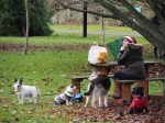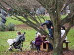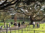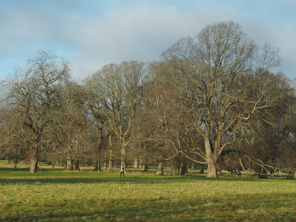 … cu ochii de jur-împrejur la tot ceea ce ne ieșea în cale. Copaci seculari, cu ramuri încârligate, golașe, fără frunze în luna lui decembre, care străjuiau pășuni de un verde în continuare crud.. Turnul cu ceas în depărtare, trona peste semeții copaci… Oameni, mulți, familii cu bunici și nepoți la plimbare, animăluțe domestice scoase la pășunat, câini care își însoțeau stăpânii, copiii care se cățărau prin copaci… Un adevărat spectacol, o adevărată plăcere…