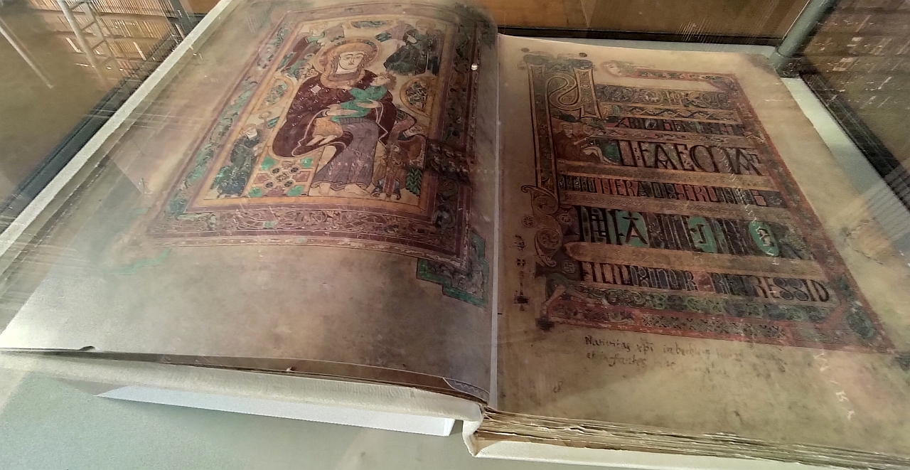 Și acolo, în bibliotecă, era expusă o copie a celebrei Book of Kells…