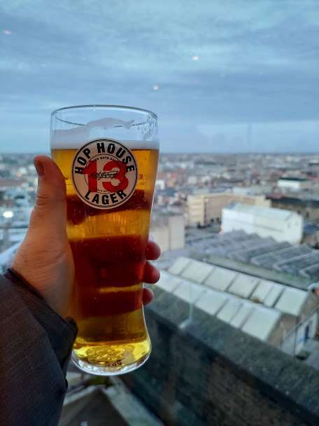 … iar la etajul 7 am intrat în barul Gravity, unde am degustat acel lager Hop House 13 excelent…