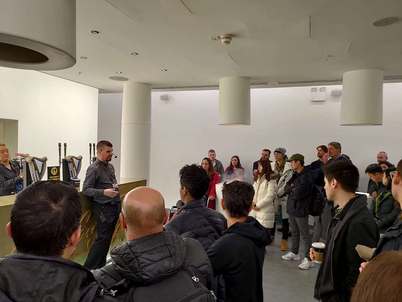 … unde vizitatorilor li se explică care este gustul berii Guinness… ce arome lasă când este gustată… un pic dulce, cu arome de lapte, de cafea și ciocolată, că trebuie să fie cremoasă și că alcoolul din ea nu se evidențiază gustului… calitatea unui pint de Guinness fiind dependentă și de felul în care este turnată în pahar…