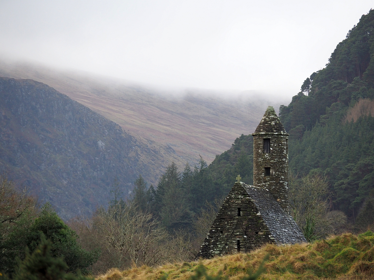 - Așezământul monahal Glendalough din Munții Wicklow, cu o istorie de peste 1000 de ani