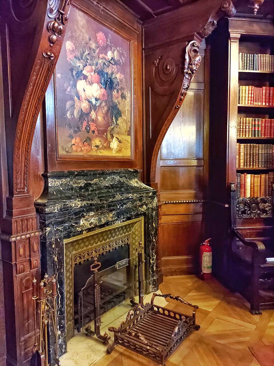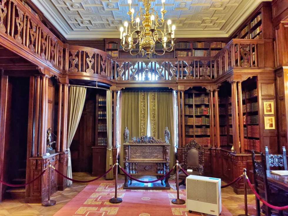 … pe două nivele, sculptată în totalite din lemn de ulm, cu frumoase decorațiuni și cu o colecție de aproximativ 2500 de cărți din colecția regală. În 1938 avea aproape 5300 de carți!