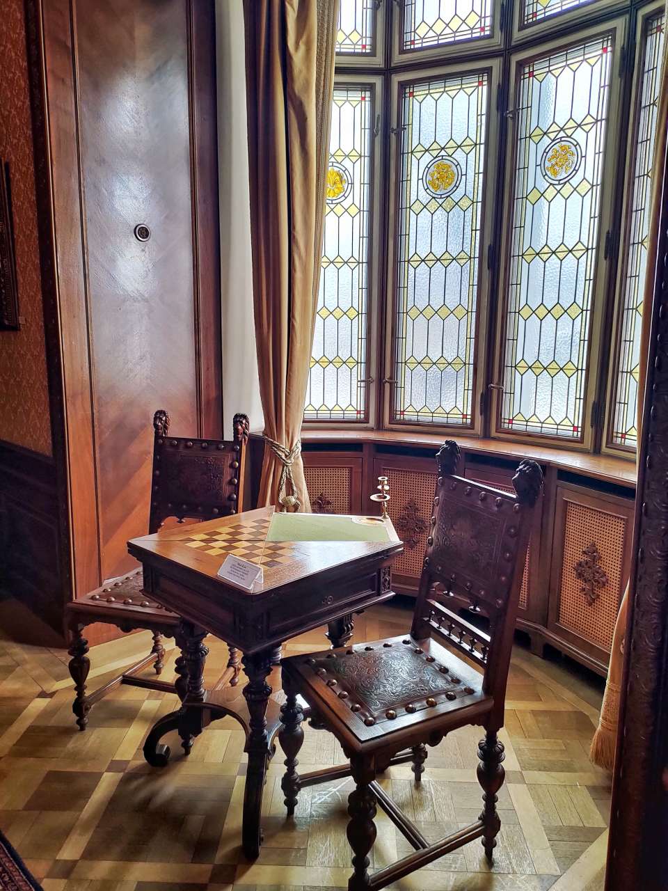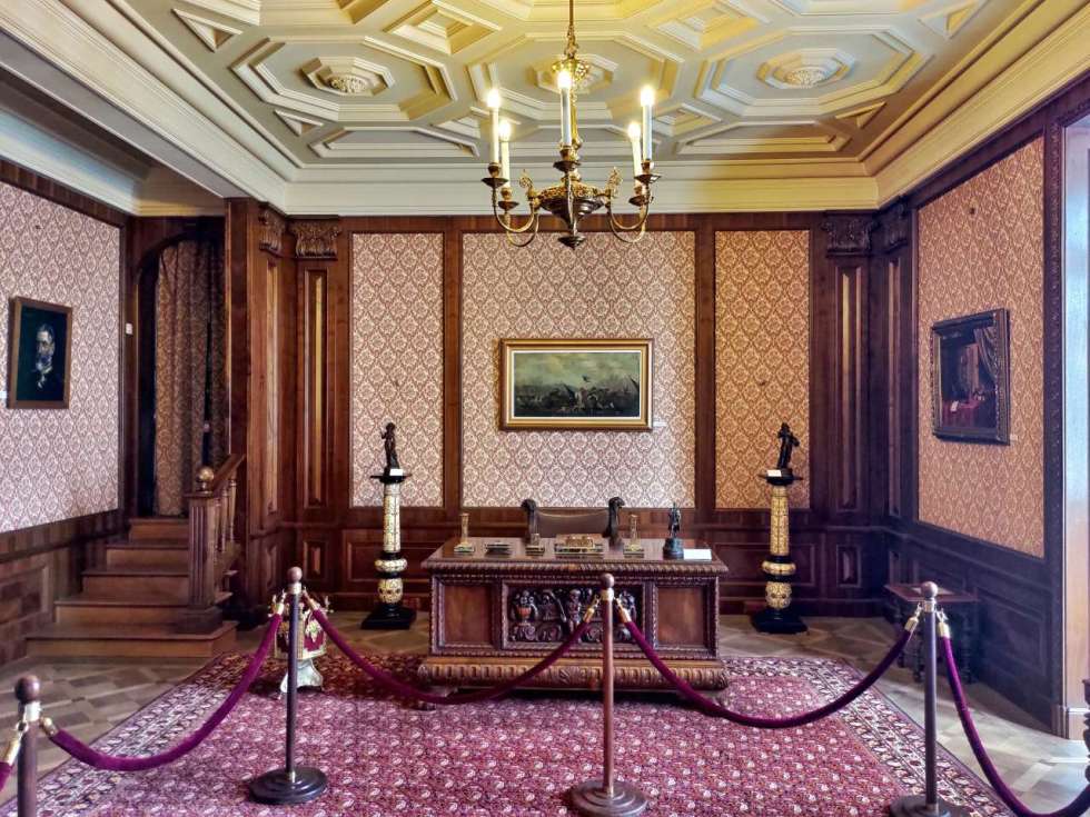 Vă dați seama că după ce a trecut prin epoca comunistă, obiectele de mobilier și amenajările decorative nu mai sunt cele originale, din vremea regilor noștri. Însă doamna-ghid ne-a asigurat că toate interioarele au fost restaurate cât mai aproape de ce au fost ele cândva, după documente și planuri istorice. Obiectele de mobilier, colecțiile de artă etc. au fost readuse de pe unde fuseseră împrăștiate iar pentru restaurare au lucrat firme, fabrici și ateliere românești.