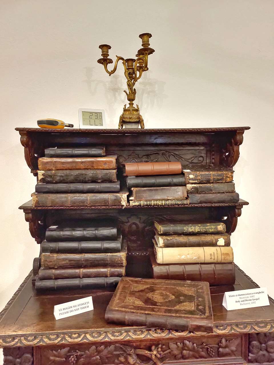 … dar și o colecție de evanghelii, dintre care una din anul 1652. Se pare că pe timpul lui Șerban Cantacuzino exista o colecție importantă de cărți în biblioteca conacului, luată de către boierii care l-au ucis și detronat.