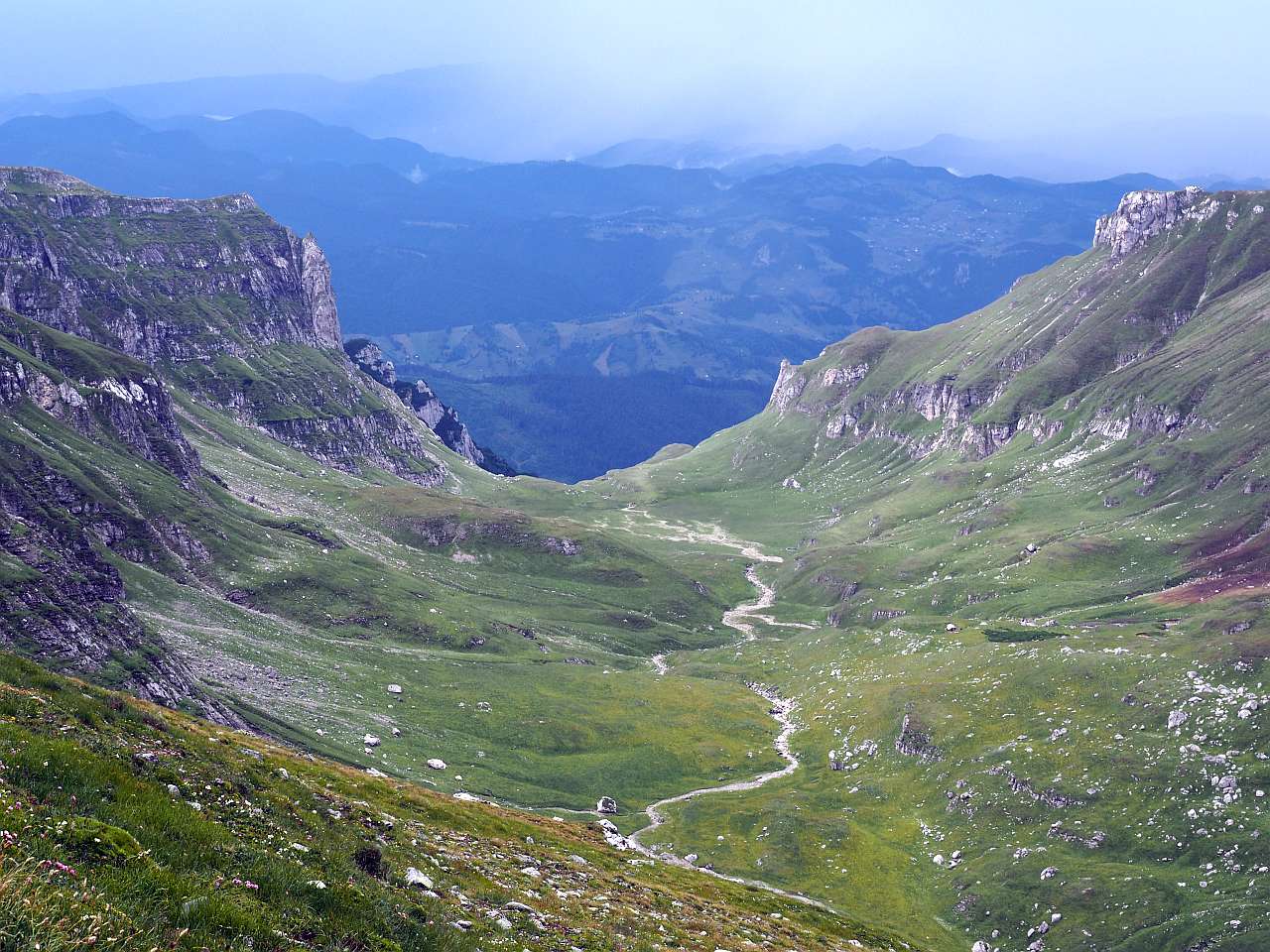 … iar imediat după curbă am văzut Valea Ialomiței, șaua Cerbului și traseul de pe coama Munților Obârșiei, către Babele…