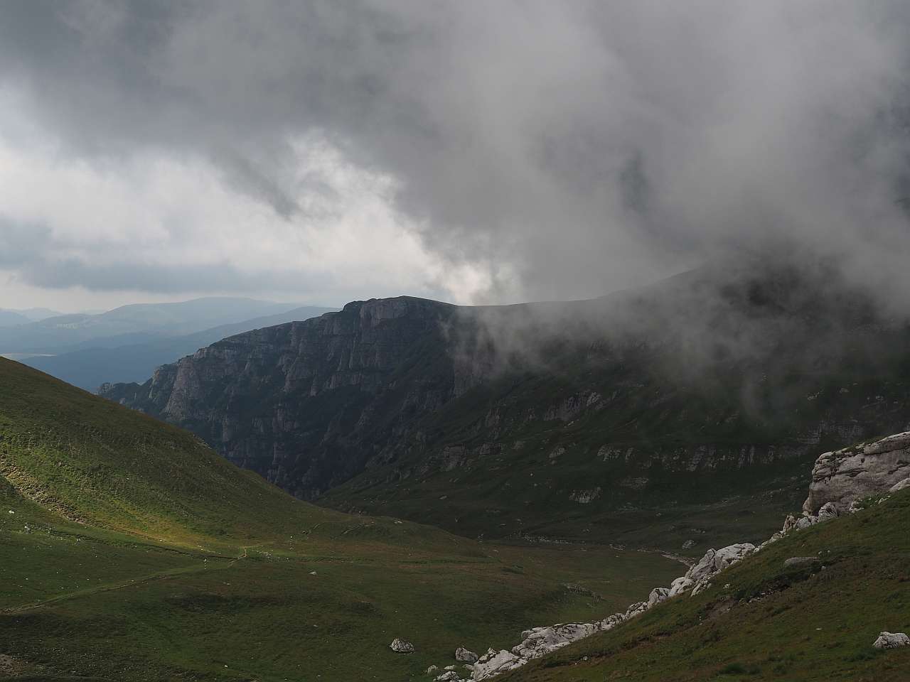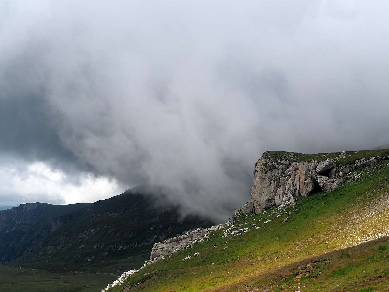 În căldarea superioară a văii am ajuns la Mecetul Turcesc și am început a urca prin dreapta lui către Șaua Cerbului… când au apărut primii nori groși…
