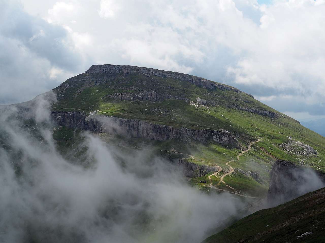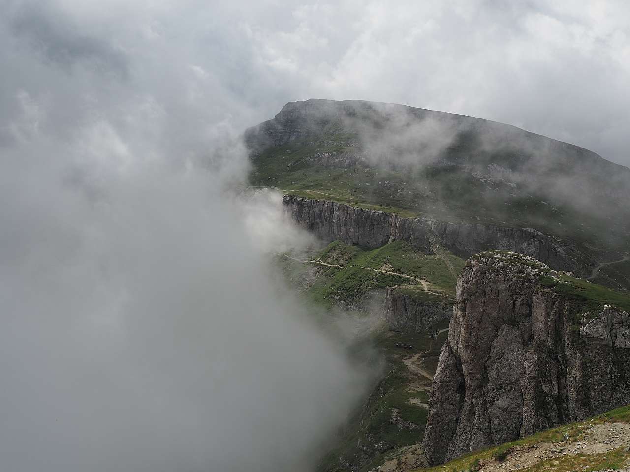 … prea multă splendoare, un alt nor supărat l-a acoperit, așa că ne-am hotărât să-l urcăm cu altă ocazie, pe cer mai senin. Ca să nu mai riscăm o altă ploaie sau grindină la înălțimea celor 2492 de metri ai săi.