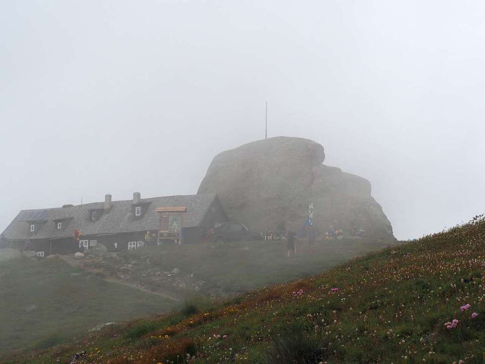 După 3 ore și 50 de minute ajungeam la Cabana Vf. Omu, într-o ceață destul de deasă și printre câteva zeci de turiști…