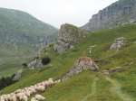 Imediat ne-am întâlnit și cu ciobanul nostru, fără de câini. Cel despre care v-am povestit și acum o săptămână. Care m-a întrebat dacă mai sunt mulți concurenți, pentru că voia să treacă cărarea cu turma sa. A făcut-o rapid, ca să nu-i încurce pe concurenți.