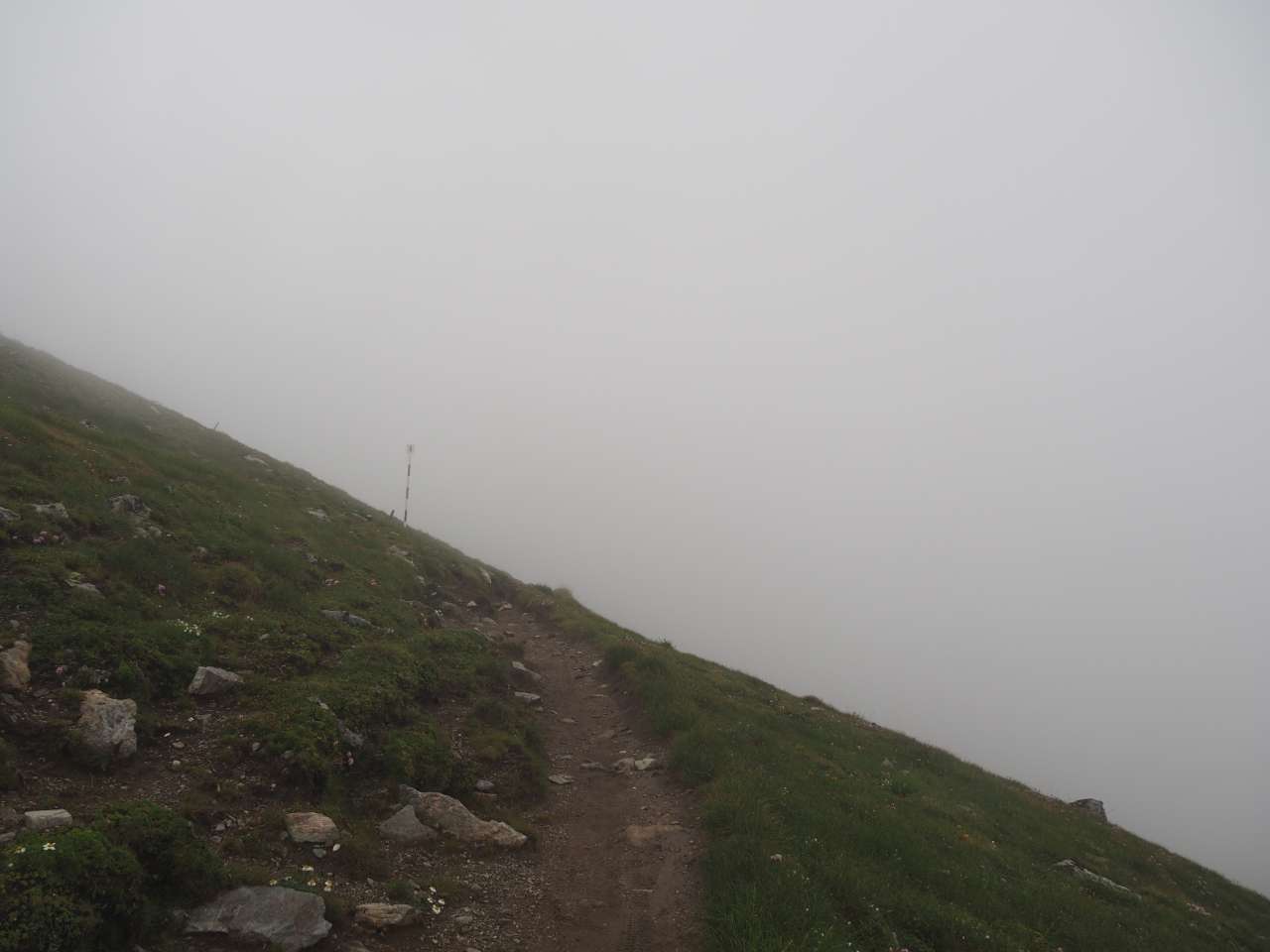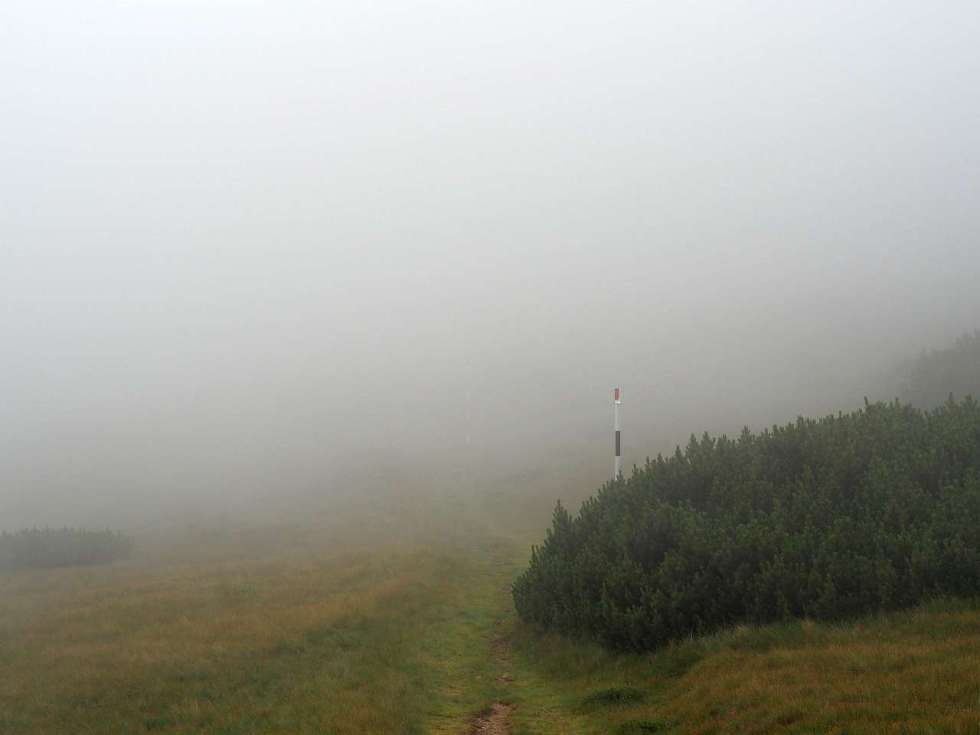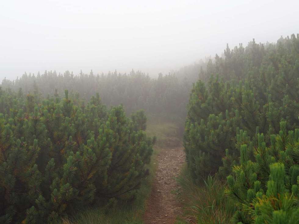 … și s-a lăsat când am trecut pe Muntele Bătrâna, făcând mai greu de văzut indicatoarele traseului. Dar cu răbdare și ghidați de un drum vechi, al grănicerilor bănuiesc, am ajuns și am trecut prin jnepenișul înalt…