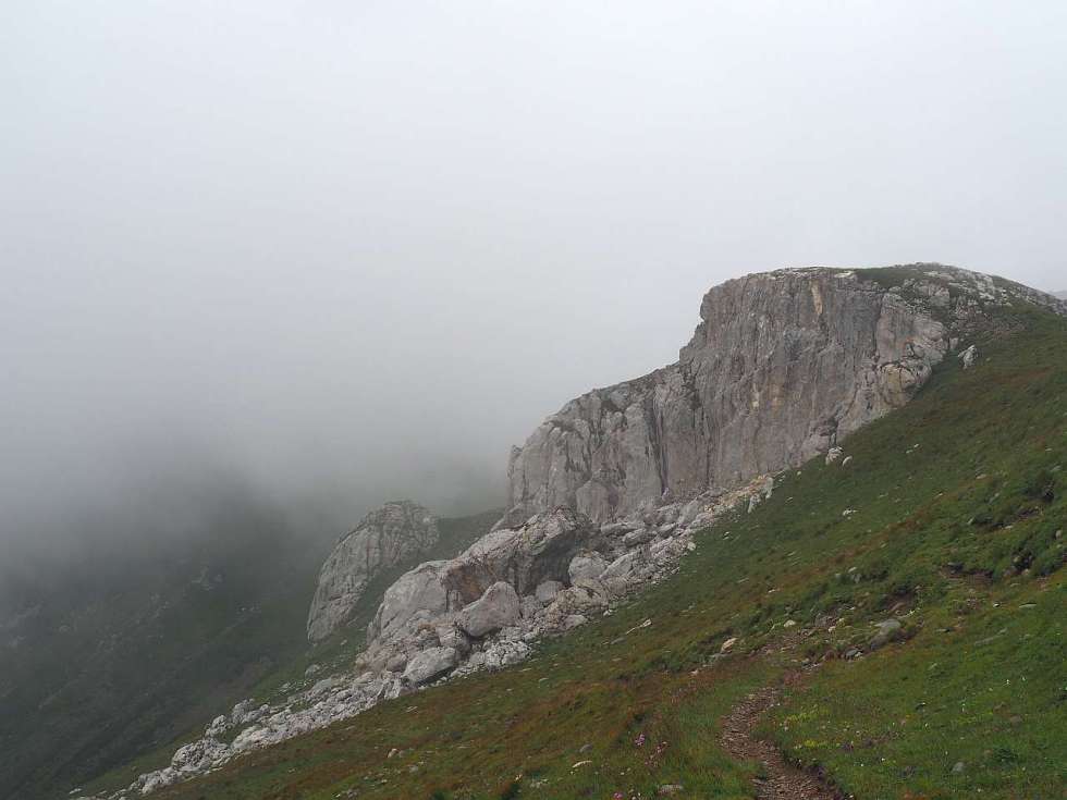 Ceața persista, chiar nu știam dacă să ne întoarcem la Peștera pe traseul cunoscut prin Valea Obârșia Ialomiței sau să o luăm pe cel plănuit – pe Munții Bătrâna, pe la refugiul Șaua Bătrâna.