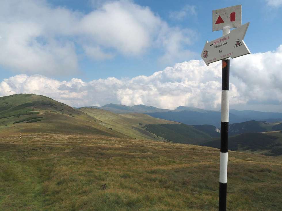 …. după încă câteva sute de metri de la refugiu am întâlnit indicatorul și traseul către Peștera prin Valea Doamnele…