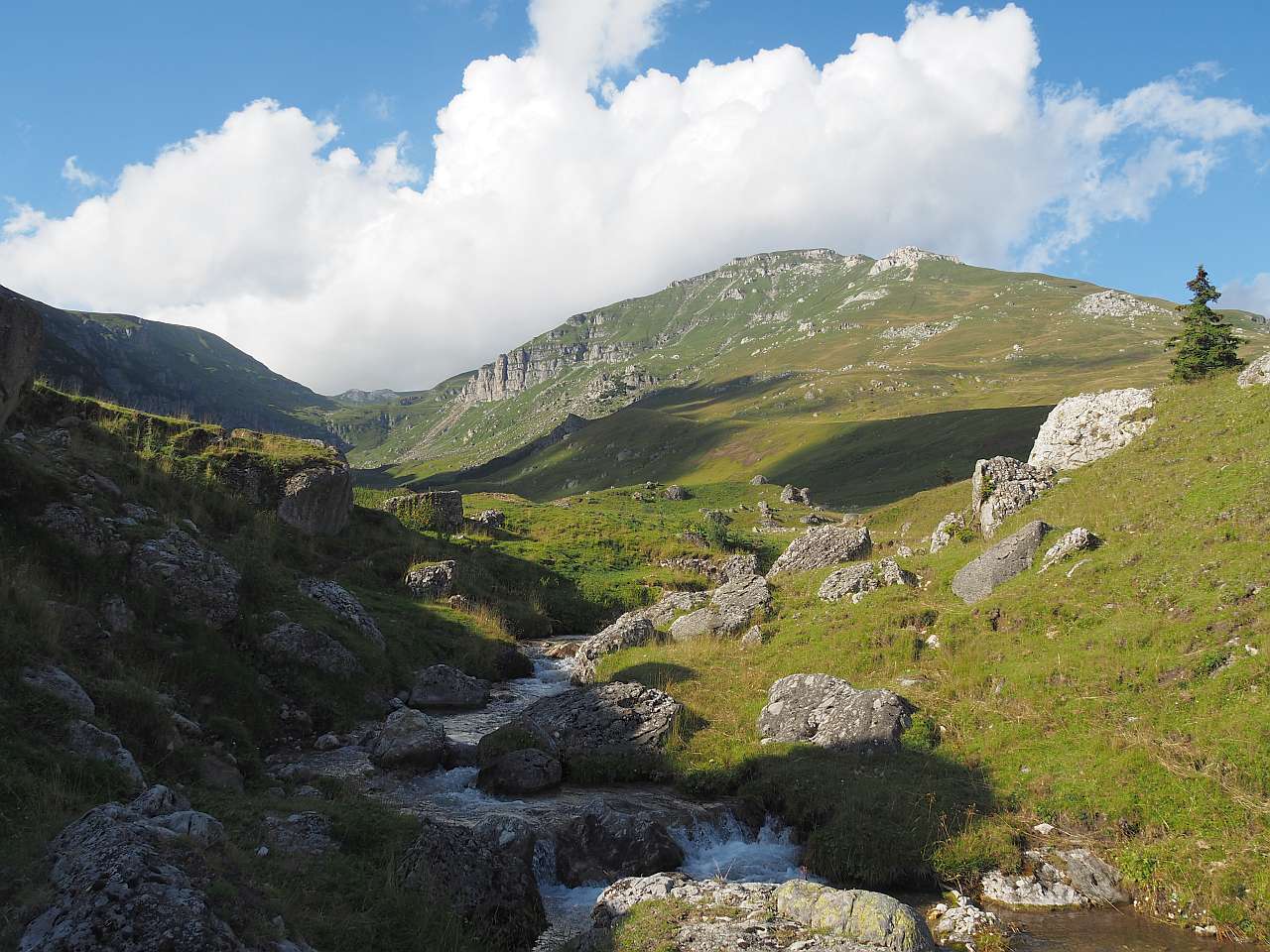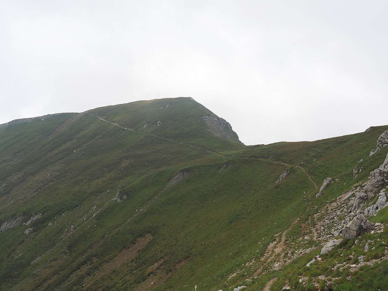 Cu o săptămână înainte coborâsem către Peștera pe Muntele Doamnele, însă panta aia cu iarbă umedă și noroi de la final nu-mi lăsase amintiri prea plăcute, deși până acolo drumeția fusese ca o plimbare într-un parc alpin. Așa că parcă voiam să aflu dacă coborârea din Șaua Bătrâna este mai lină, mai omenească cu genunchii bătrâni.