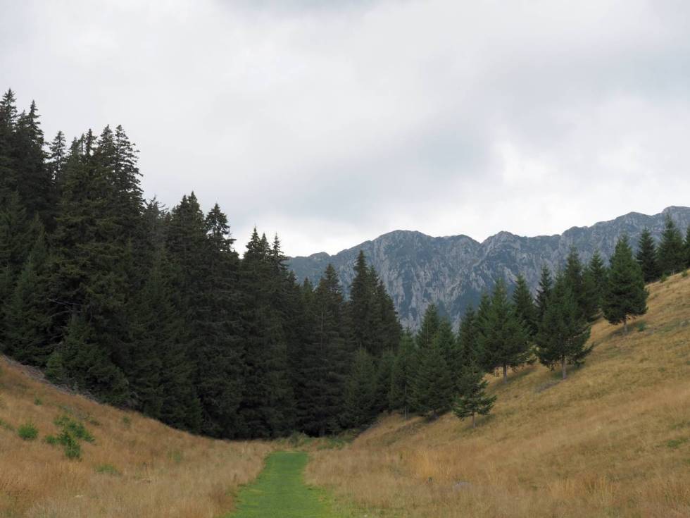 … și am mai mers așa până am ieșit în Poiana de pe Muchia Vlădușca… de unde am început să admirăm creasta Pietrei Craiului… pe dreapta noastră…