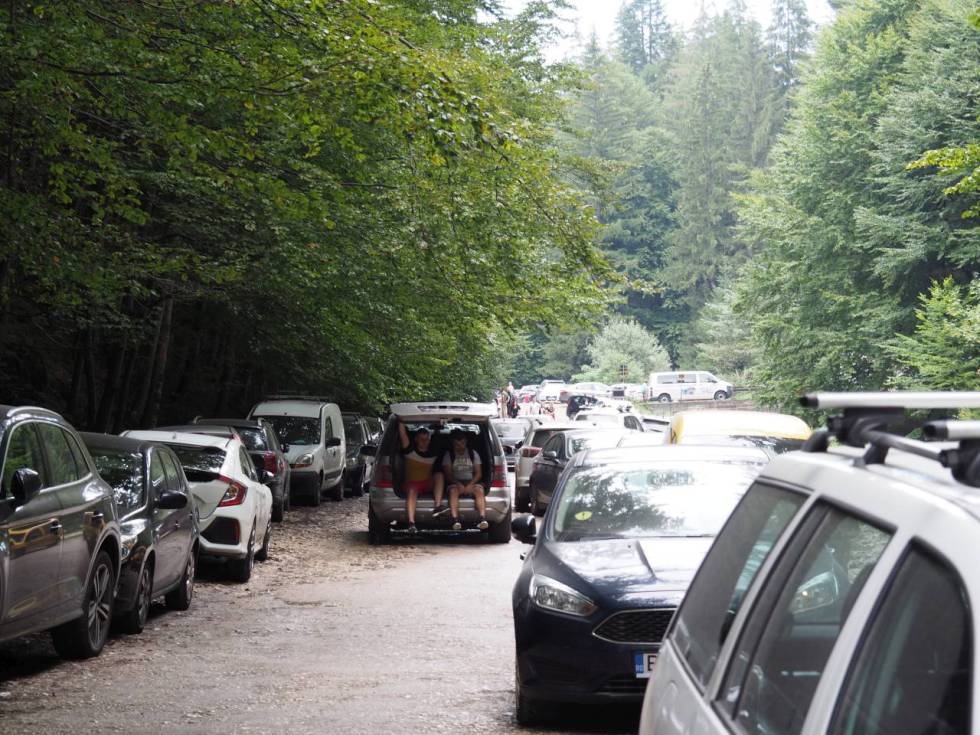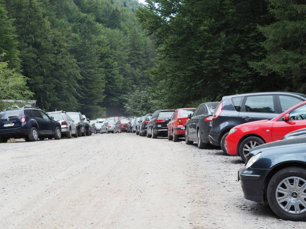 Am plecat dis-de-dimineață din București, pe întuneric, la 5 dimineața. Și, fără să ne grăbim, la orele 8 eram deja în parcarea de lângă Fântâna lui Botorog. Mi-a trecut prin cap că am cam exagerat cu trezitul așa devreme. Dar la finalul drumeției m-am felicitat, pentru că parcarea și drumurile de lângă erau pline, nu prea mai găseai loc de parcare (cred că erau cel puțin vreo 500 de mașini acolo). Bănuiesc că a fost ca pe bulevard către Cabana Curmătura…