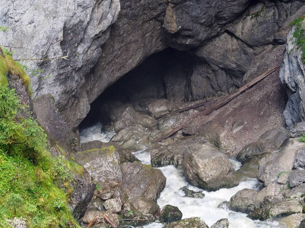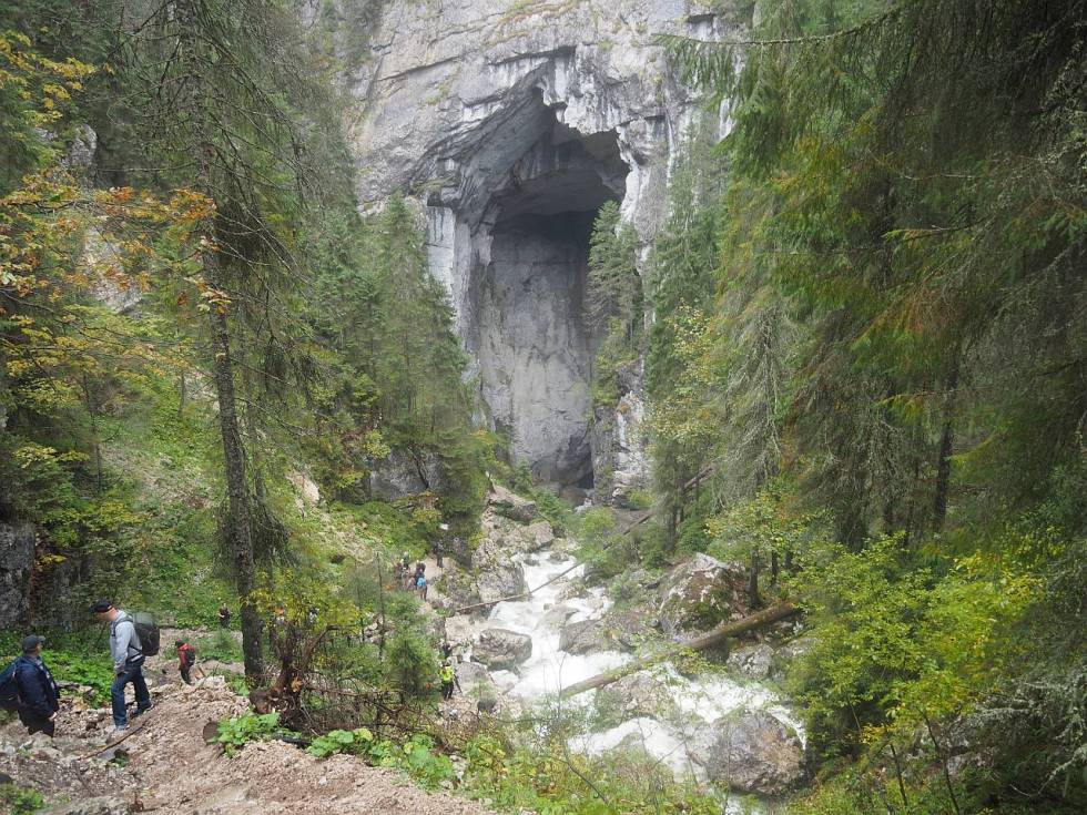 … pentru că nu am avut voie să intrăm, râul fiind prea învolburat, cu un debit prea consistent pentru noi, amatori între ale muntelui, d-apoi într-ale speologiei…