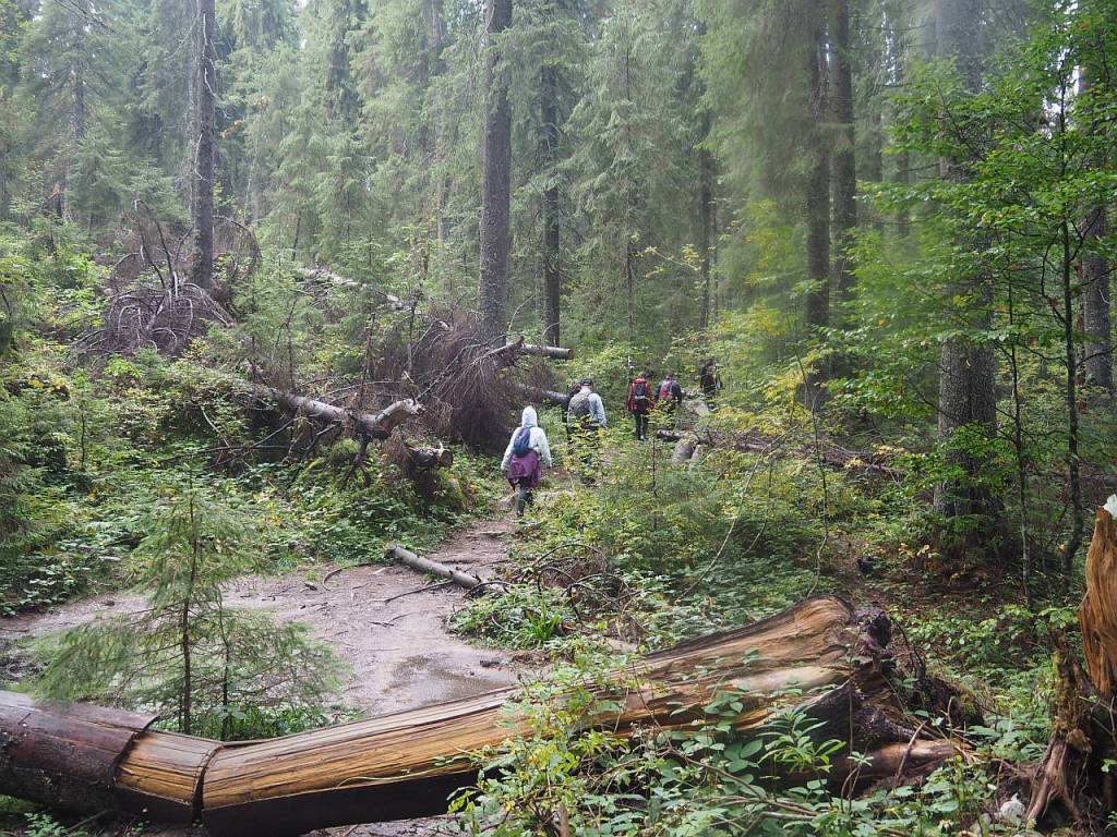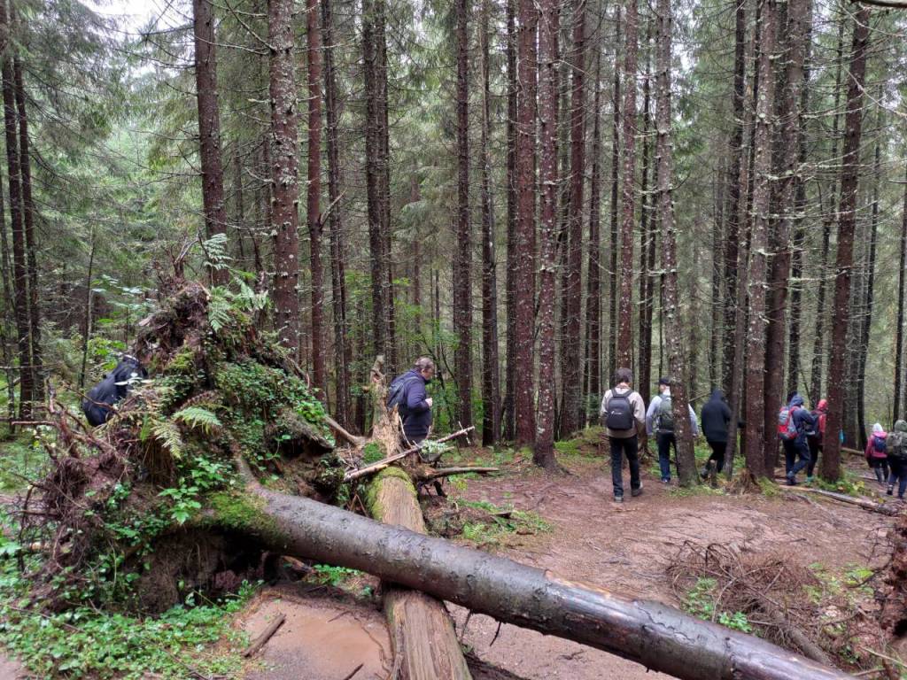 Nu am mers prea mult și drumul a început să se încline iar pe cărare au început să apară rădăcinile ude care, în combinație cu pământul la fel de jilav, au început să ne pună la încercare aderența încălțărilor dar și genunchii obosiți…