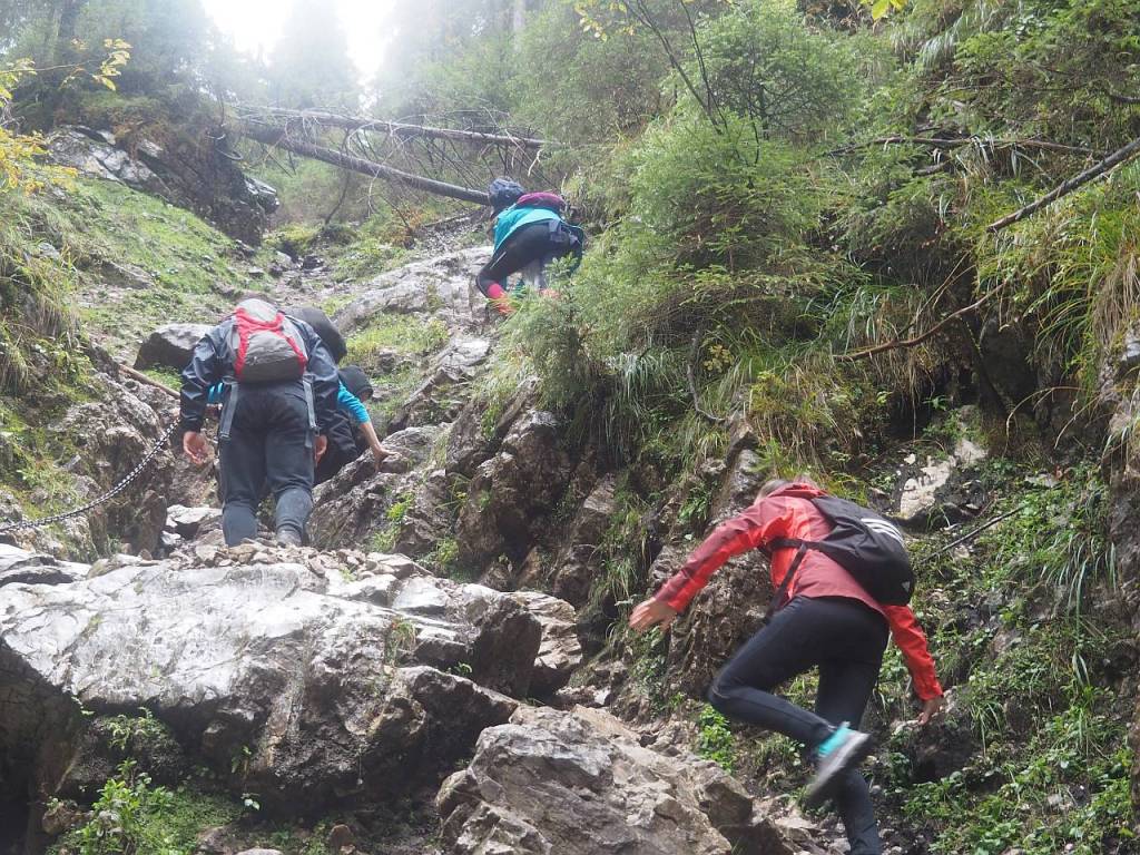 … încă un hop până la Portal, niște lanțuri, alte stânci umede… o mână de ajutor din partea partenerilor de drumeție…