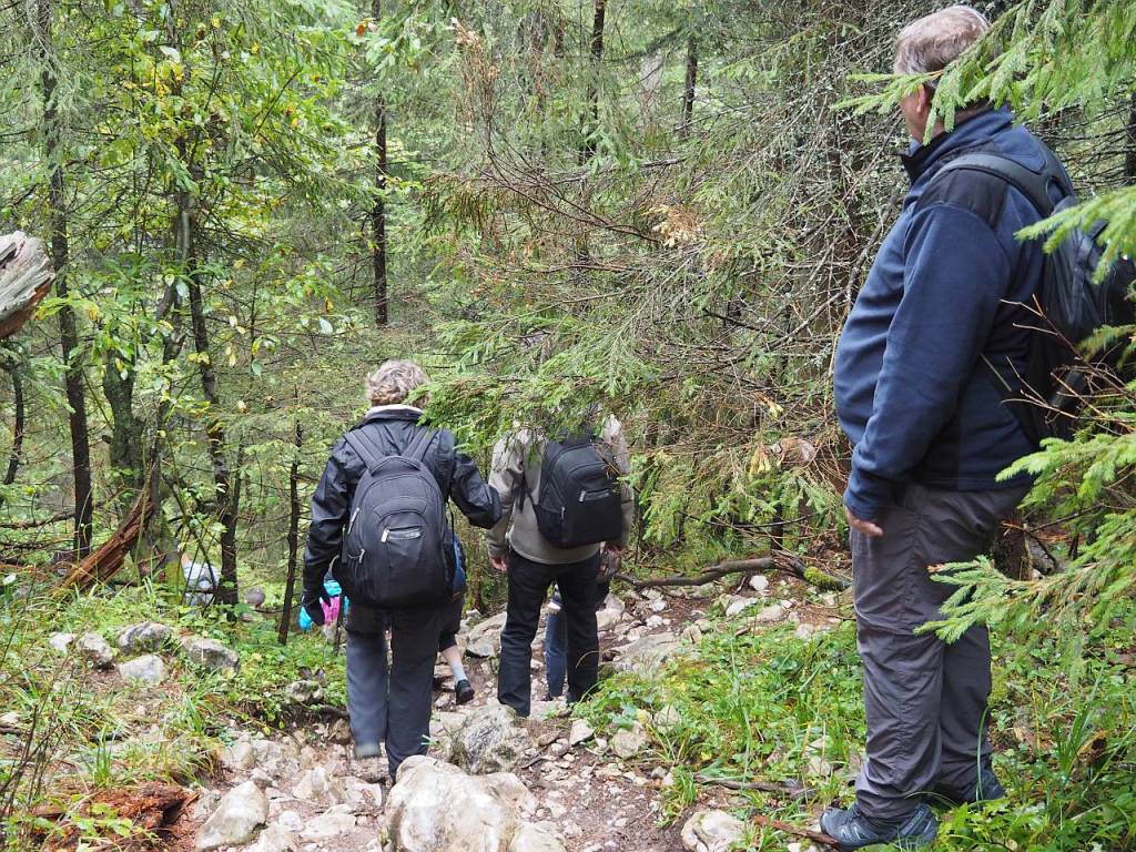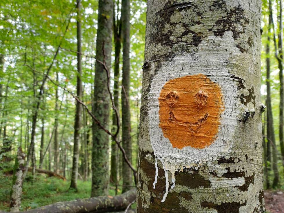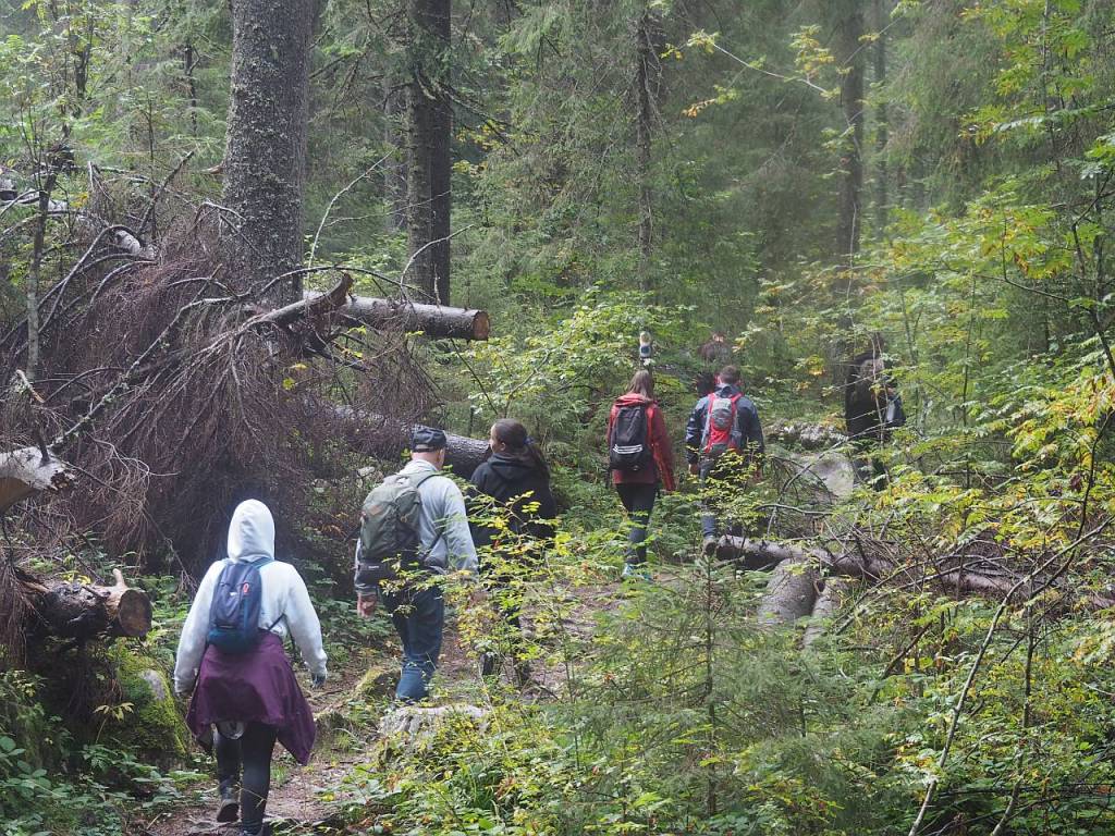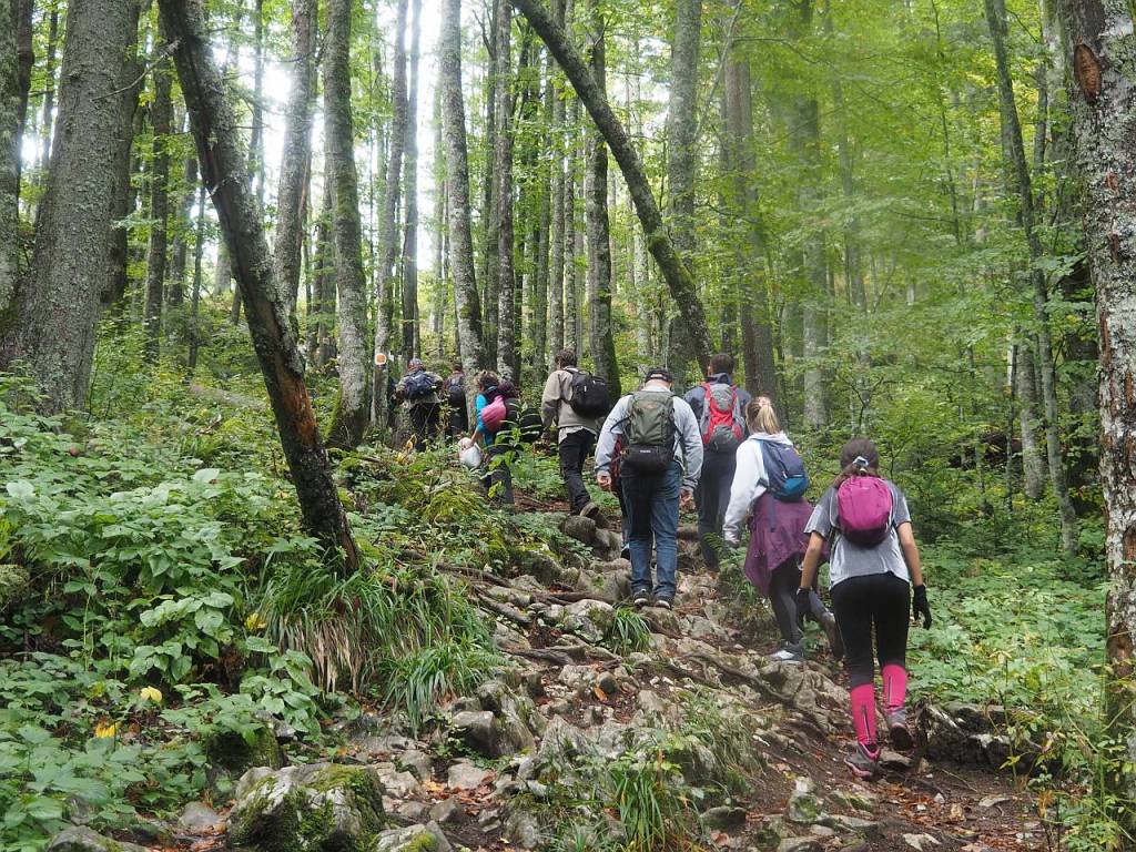 Ne-am adunat, am făcut poza de grup și… Bulină albastră… așa că am luat-o în direcția indicată prin pădurea deasă…