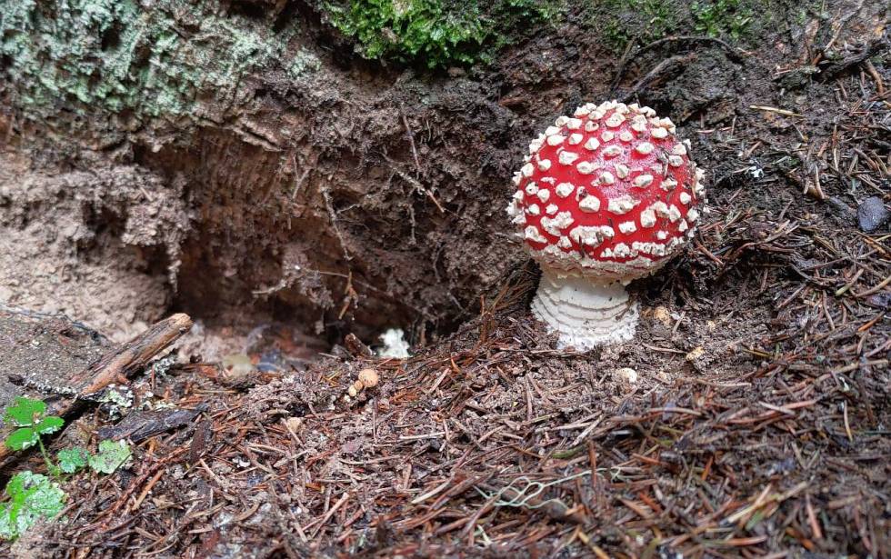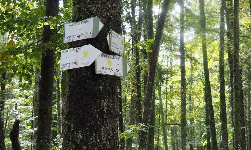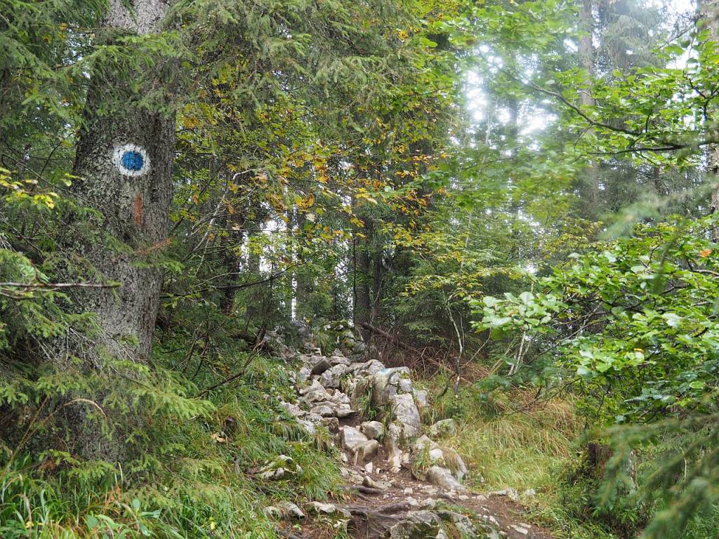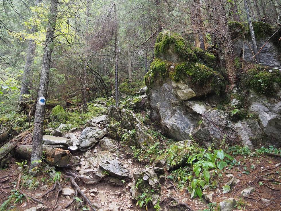 Pe un traseu tot prin pădure, pe o cărare cu pantă nu foarte dificilă, cu rădăcini, pământ și puțini bolovani…