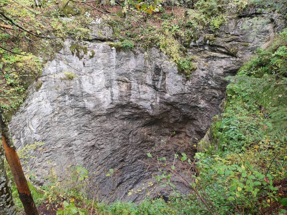 … iar când am ajuns la avenul Borțig am rămas, din nou, cu gura căscată… Impresionantă gaura imensă cu pereți rotunzi din stâncă, aproape perfectă, de parcă ar fi fost făcută de ființe cerebrale…