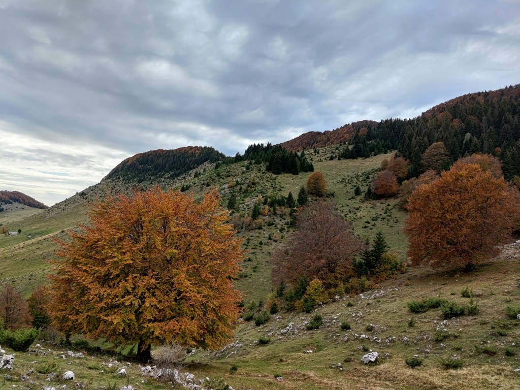 Noi am ales să mergem pe traseul către șaua Groapele – Șaua Joaca – La Table. Apoi să ne întoarcem pe un traseu în buclă. Nu am mai ajuns din păcate La Table, pentru că a început ploaia. Și traseul buclă a ieșit din plan când s-au întețit picăturile de ploaie.