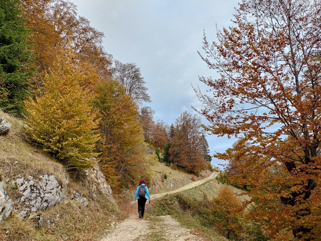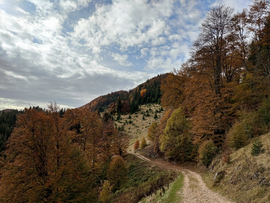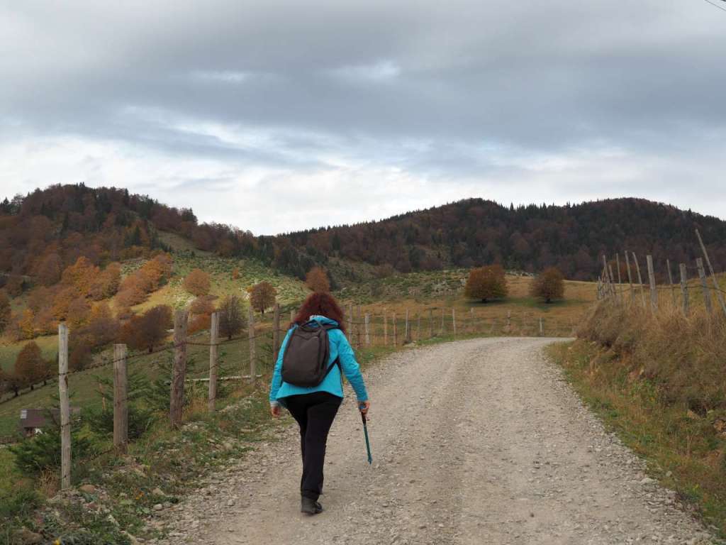 Traseul nu este deloc greu, pante ușoare, un pic mai accentuate către șaua Groapele, drumuri forestiere în marea lor parte. Dar se poate ajunge acolo în maxim o oră dacă se merge la pas. Noi am făcut mai mult de două ore, pentru că ne-am holbat la toate peisajele ce toamna dar și frumosul sătuc de munte ni le așternea în fața privirilor.