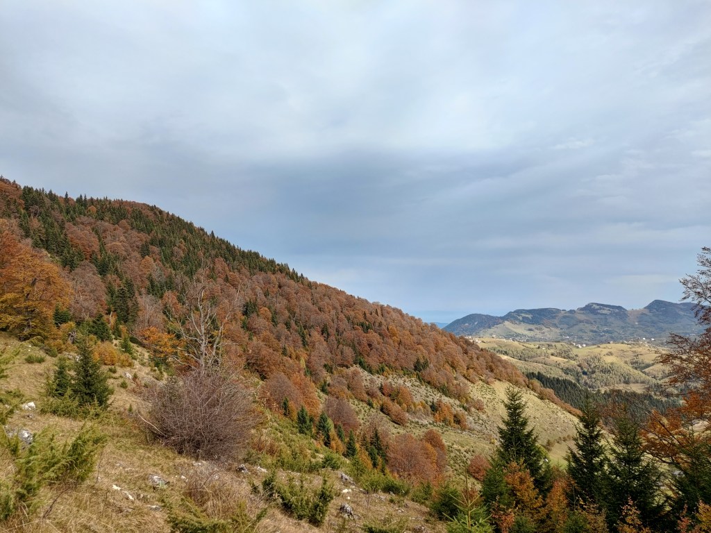 Până în șaua Joaca am făcut aproximativ o oră prin pădurea deasă… Clar, ne-am mișcat mai repede după ce era să călcăm pe niște caca de urs iar niște urme de lăboanțe mari ne-au atras atenția în noroiul de pe cărare…