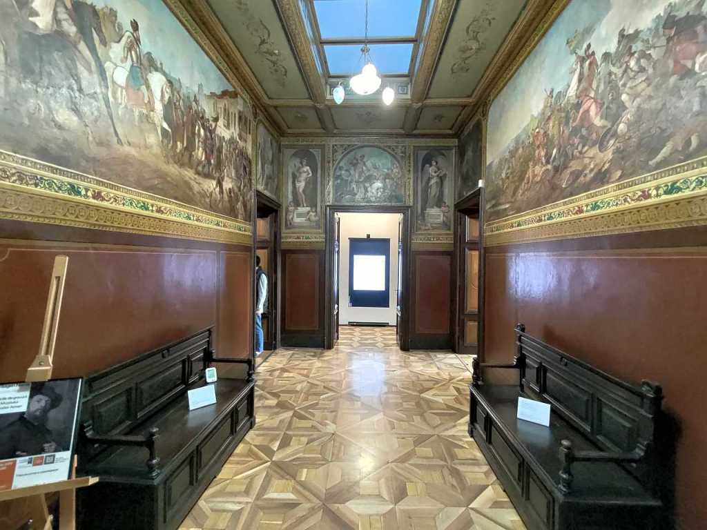 După intrare, în hol te întâmpină două fresce istorice pictate pe pereți – Intrarea lui Mihai Viteazul în Bucureși și Lupta de la Călugăreni, personajul central fiind marele domnitor român…