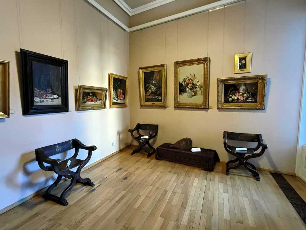Apoi am pătruns în birourile și camerele casei, în care am admirat pe îndelete lucrări în ulei pe pânză sau pe panouri din lemn, realizate de-a lungul evoluției sale ca pictor și ca artist desăvârșit – scene istorice și de bătălie, altele cu teme orientale sau care prezintă ambianța atelierului de lucru, alte cu teme citadine sau rurale ale acelor vremuri precum și reuniunile mondene, portrete, natură moartă și nuduri.