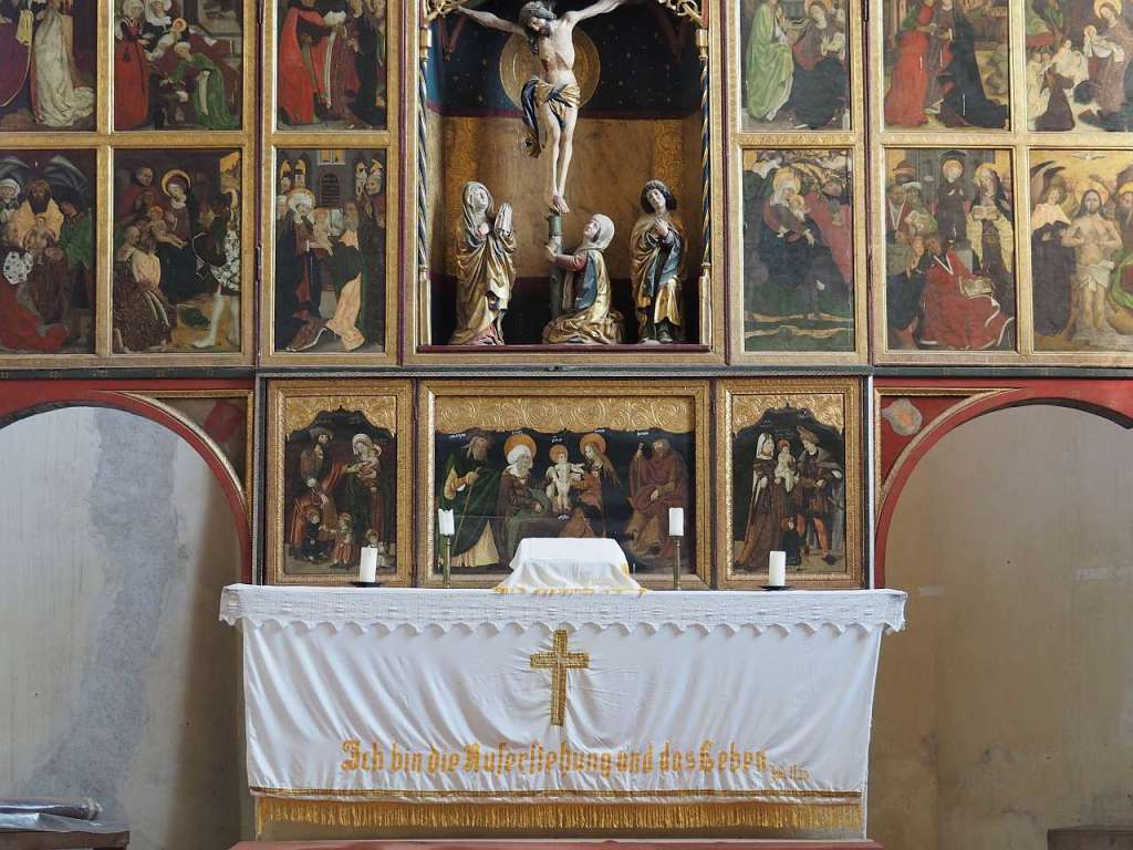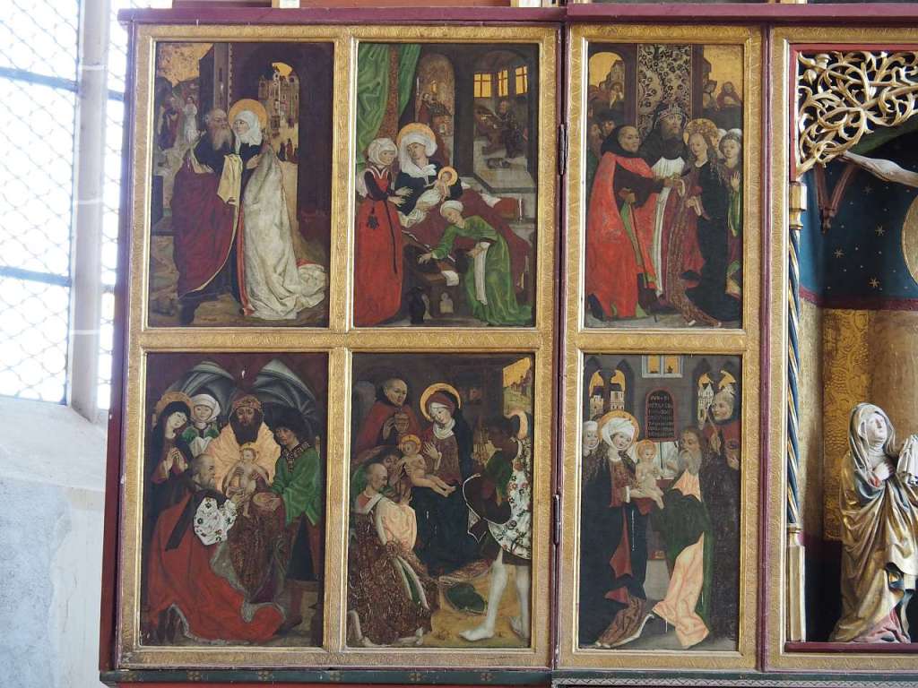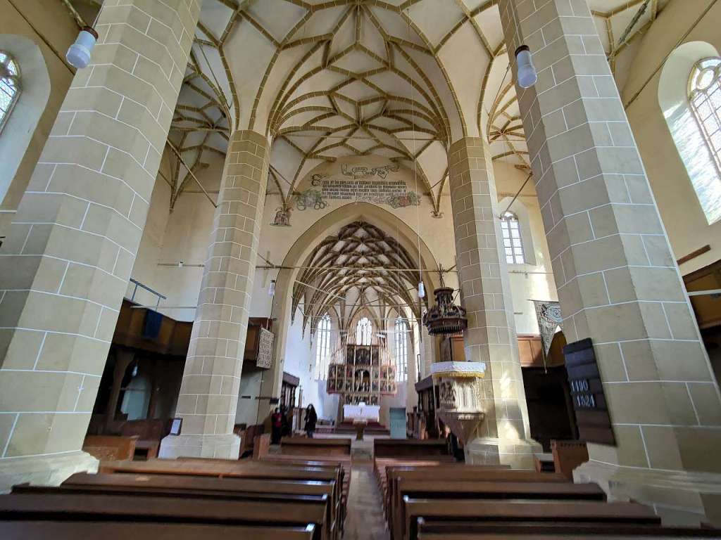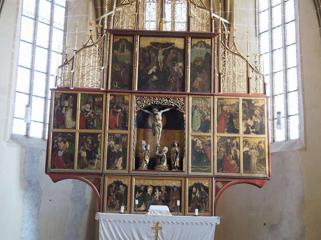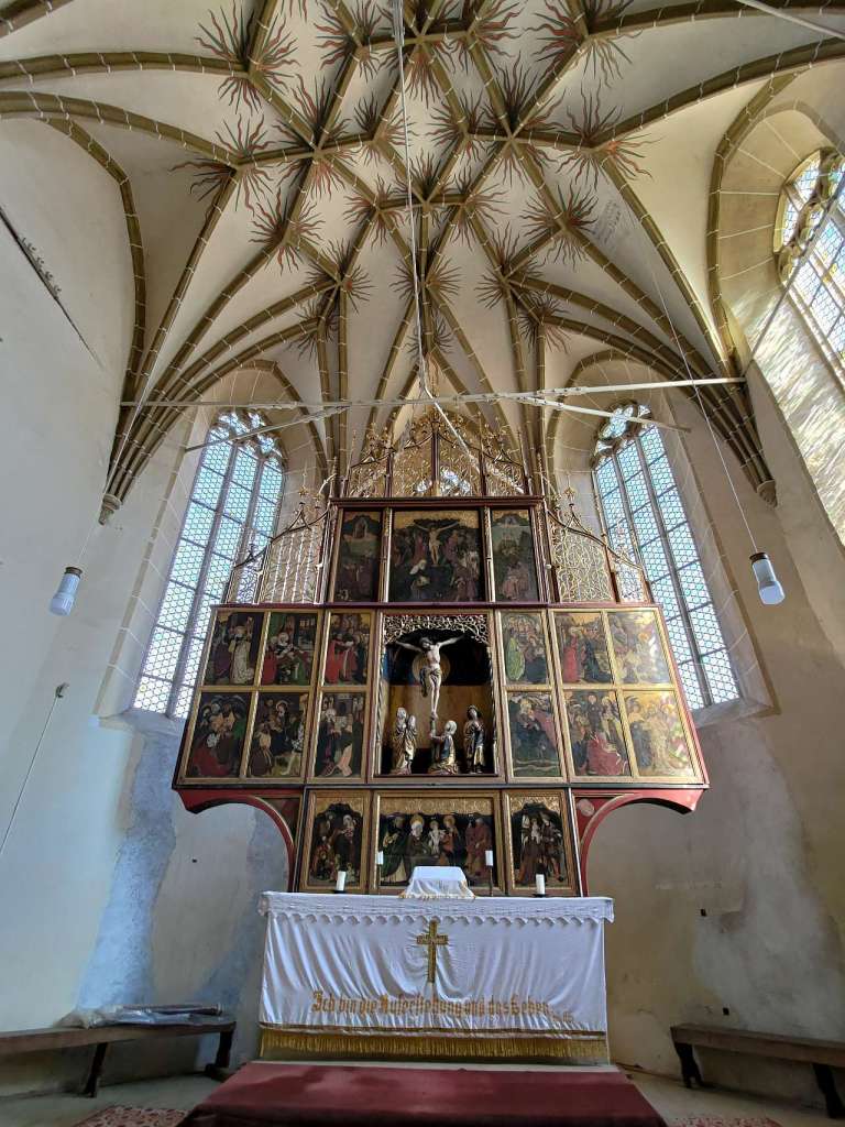 Mi-a plăcut altarul triptic, cel mai mare din toată Transilvania din câte am înțeles, și care are nu mai puțin de 28 de picturi cu scene din viața lui Isus, din viața Fecioarei Maria, scena Botezului Domnului, scena Tăierii Împrejur și cu diverși sfinți catolici (la început era o biserică romano-catolică, nu evanghelică ca acum). Vizibile erau doar 18 dintre ele, celelalte fiind pe partea cealaltă a ușilor…