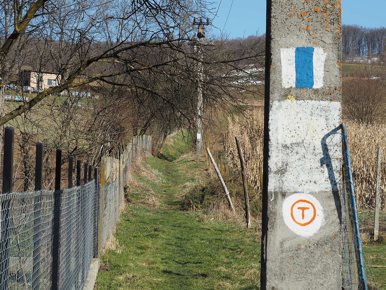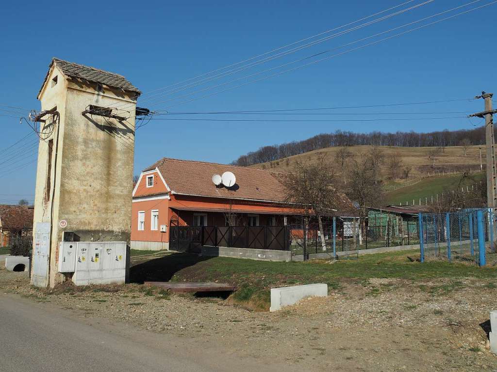 Harta, mai sus… Am ieșit din biserică, am luat-o imediat pe lângă zid, în dreapta, apoi stânga, stânga și după vreo 200 de metri am ajuns la un transformator electric, lângă care există și o bornă Via Transilvanica.