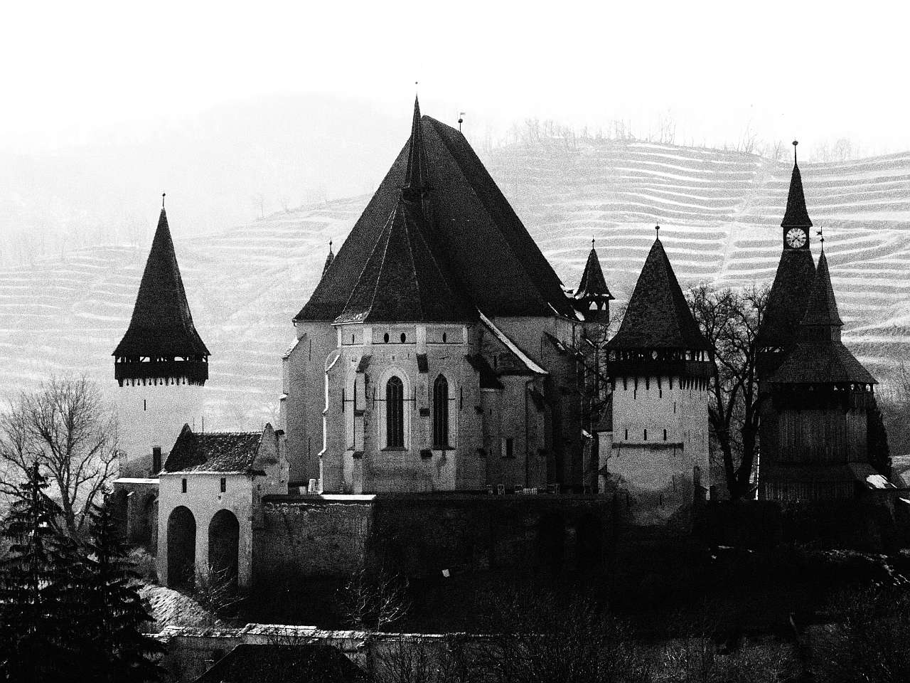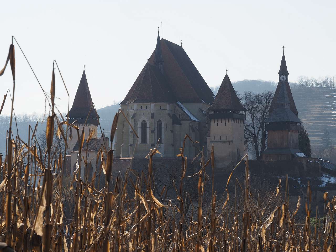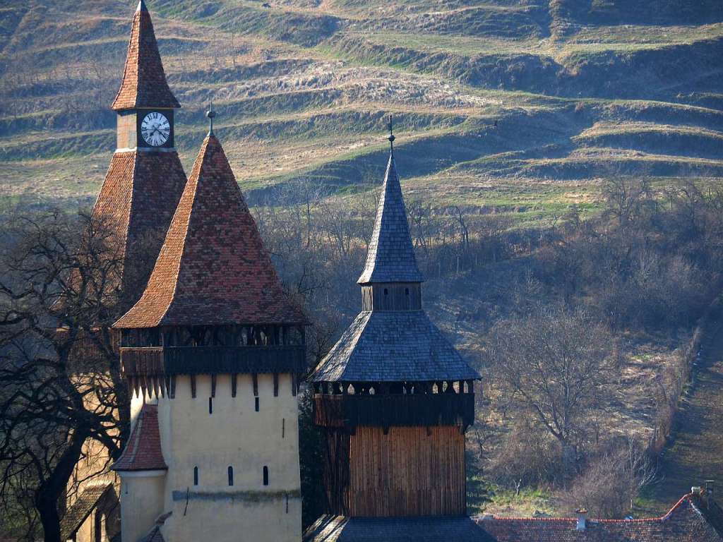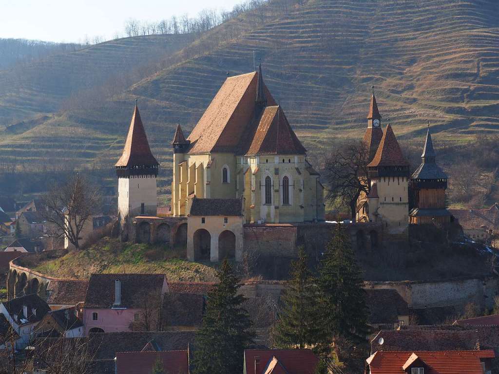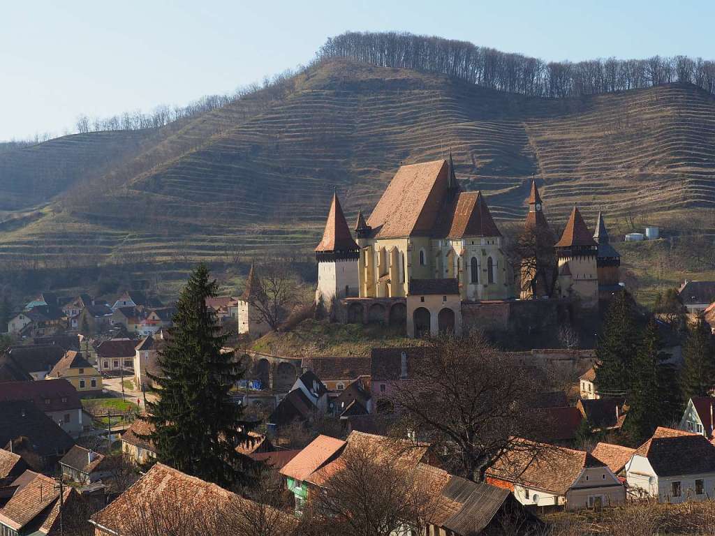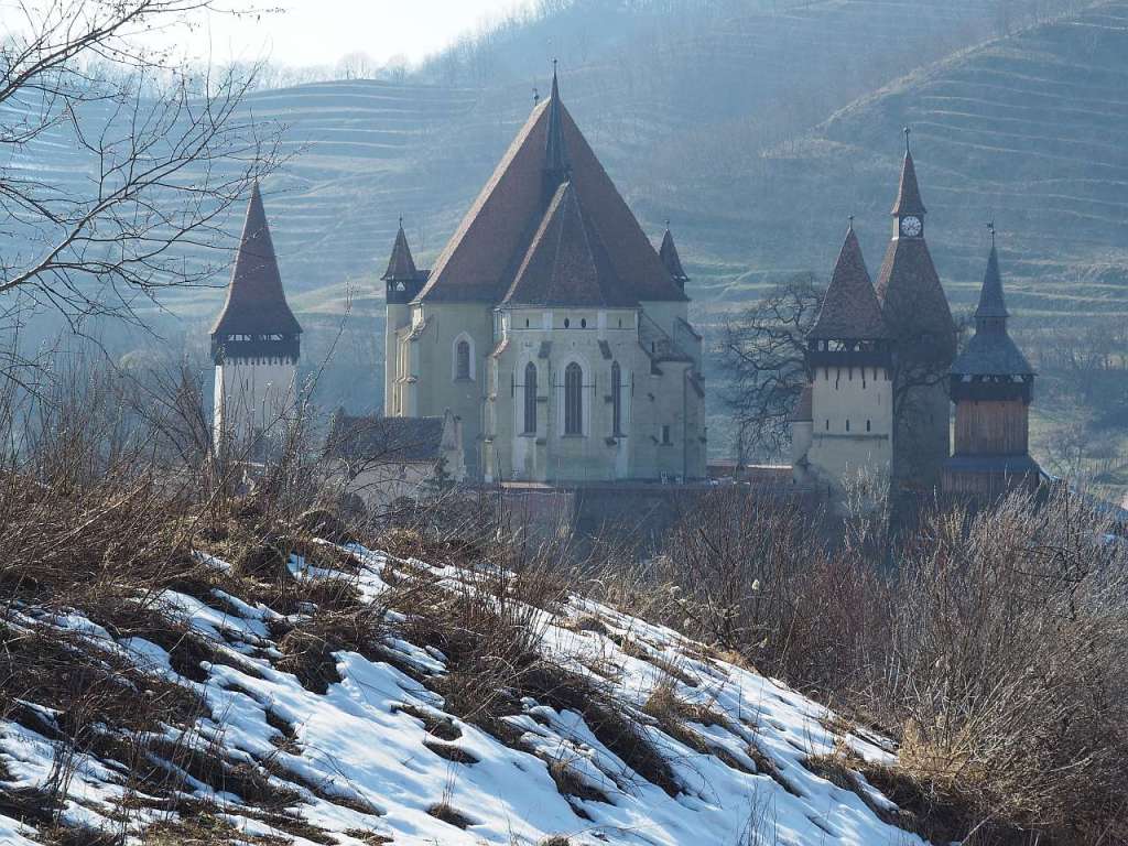 Și cum am ajuns pe culme am mers către dreapta, încă vreo 200-300 de metri, pe iarbă umedă, noroi și zăpadă, pentru a prinde cele mai frumoase cadre cu biserica fortificată Biertan.