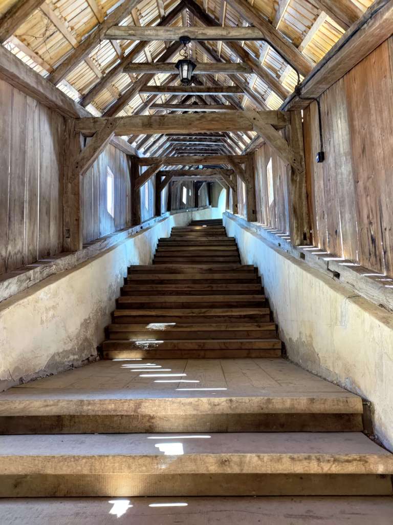 Și cam atât am putut vedea și afla de la doamna custode din interior… cele 25 de minute erau pe sfârșite și ne-a atras atenția că… gata… Off…. cu greu am ieșit din biserică, am dat un rotocol acesteia… apoi din nou, în jos, pe scara acoperită lungă de 100 de metri, realizată în secolul XVI.