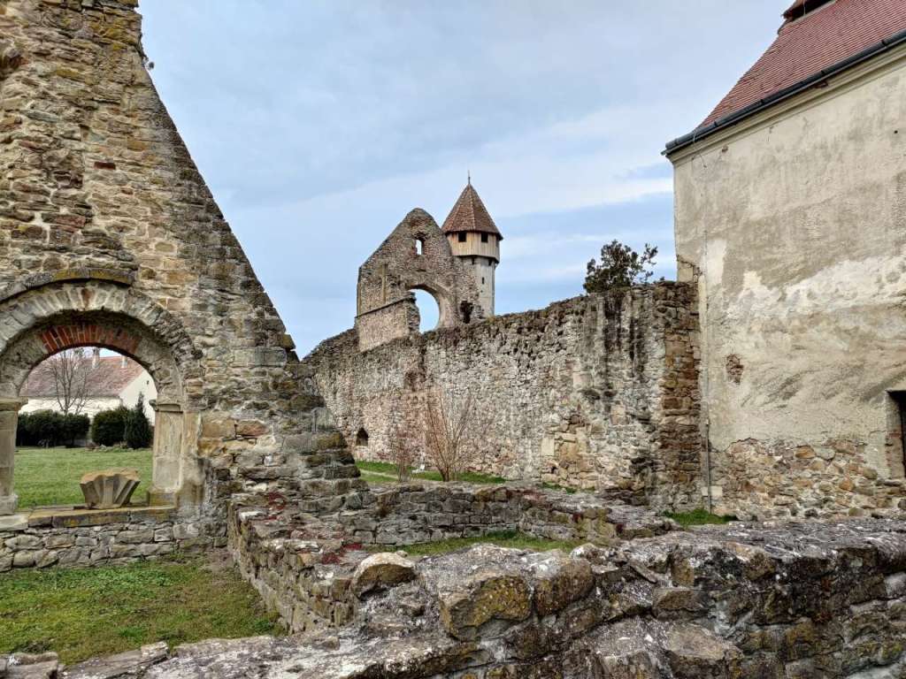 După ce i-am plătit doamnei biletele de intrare am luat-o ușor la pas de jur-împrejurul ruinelor abației, ce sfidează încă gravitația… Nu știu dacă se mai poate urca în turn, nu am avut pe cine să întreb pentru că am fost lăsați de capul nostru pe acolo…
