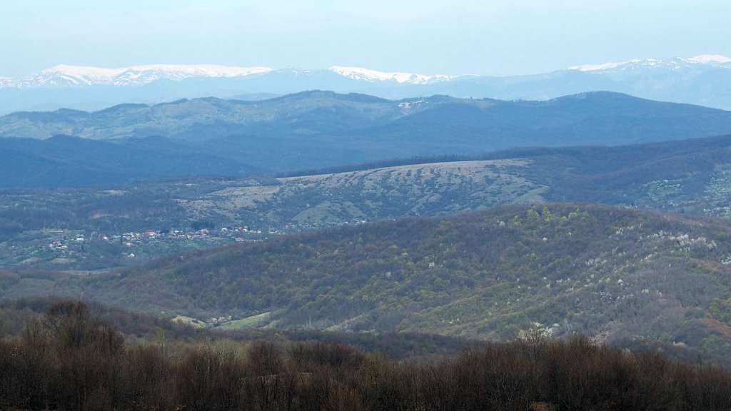 … peisajele s-au deschis în fața noastră… Carpații încă înzăpeziți, văcuțe la păscut, casele din satul Vârf, așezate chiar pe un vârf de deal… tabăra de sculptură văzută de departe…