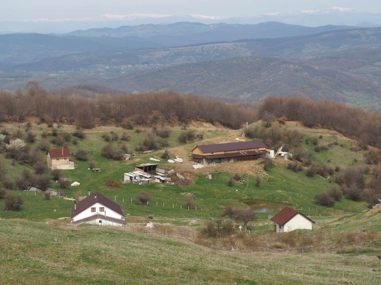 … peisajele s-au deschis în fața noastră… Carpații încă înzăpeziți, văcuțe la păscut, casele din satul Vârf, așezate chiar pe un vârf de deal… tabăra de sculptură văzută de departe…