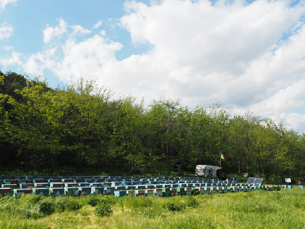 După numai câteva minuțele am ajuns la o prisacă păzită de doi câini cam nervoși. Am scos lanterna cu electroșocuri, am țăcănit puțin din ea și nu au îndrăznit să se apropie… Sunetul acela de arc electric nu le este pe plac… Este un accesoriu excelent pentru a ține câinii de stână la distanță și pe care îl avem întotdeauna cu noi în rucsac în drumețiile pe munte.