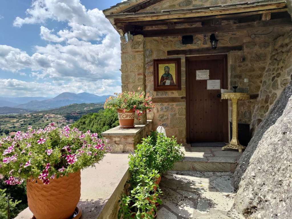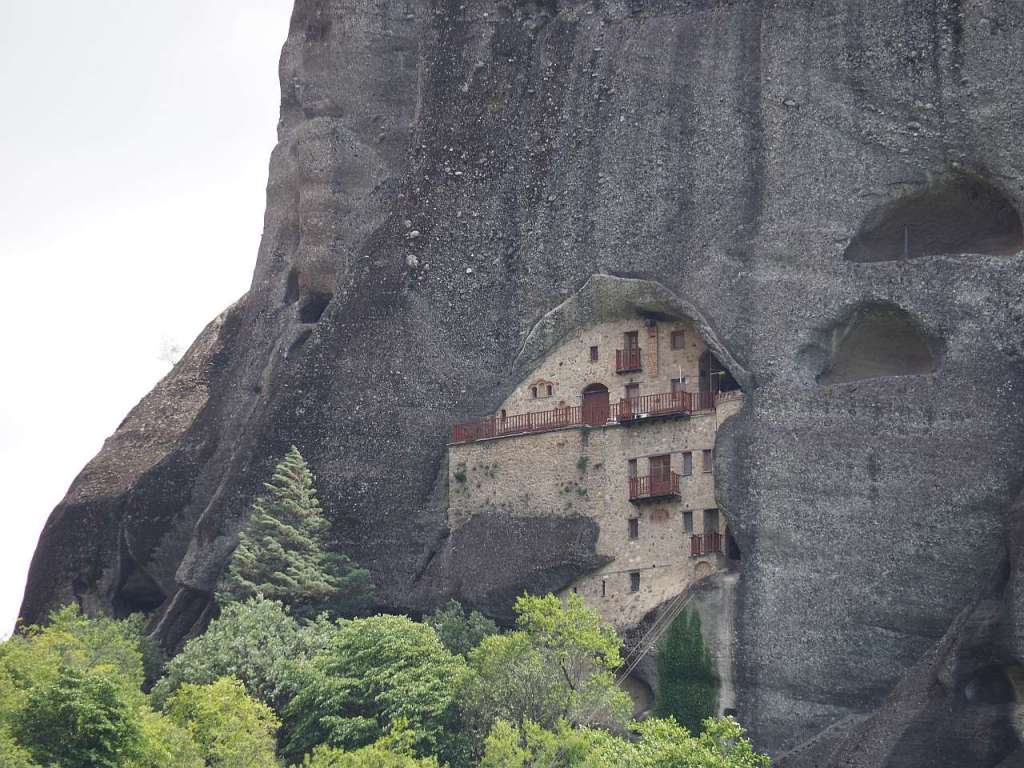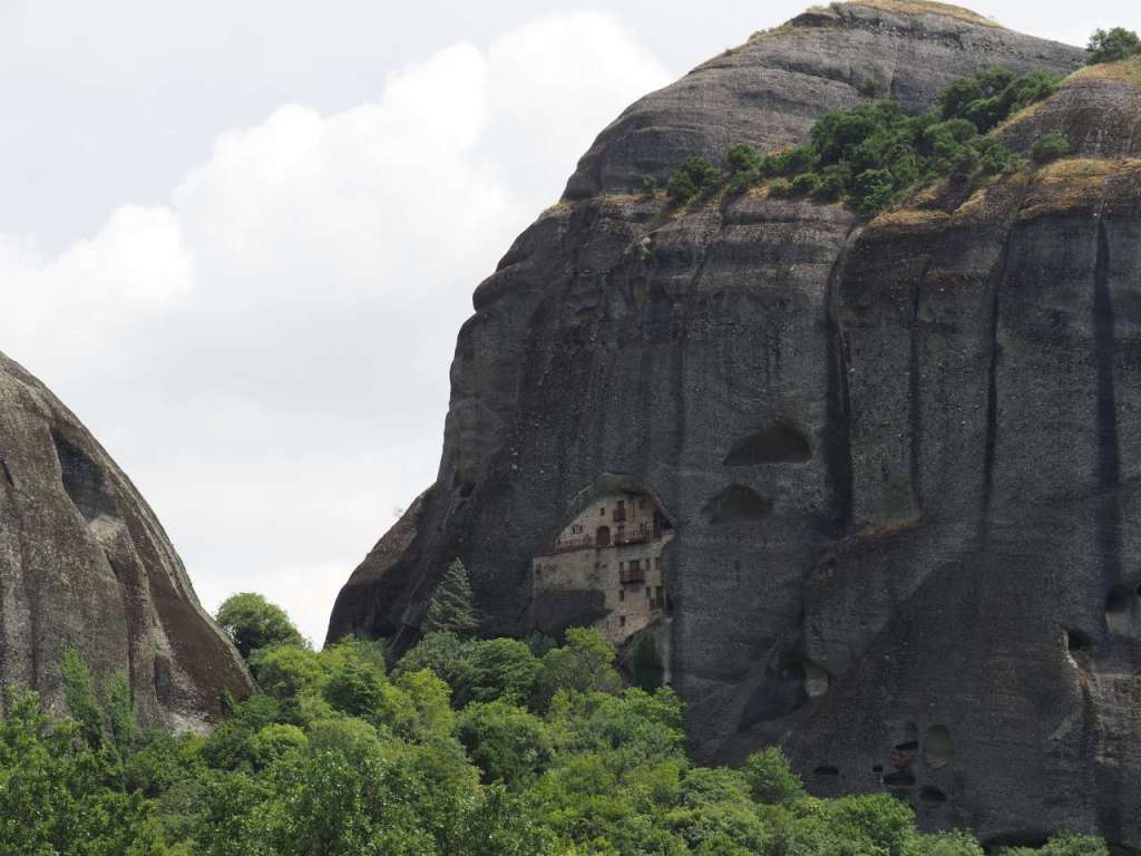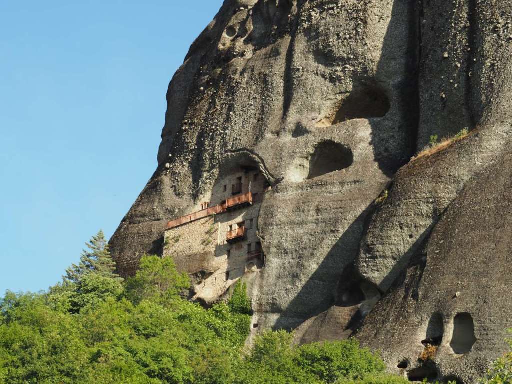 … iar pe stânca Amparia se află, tot zidită în stâncă, mănăstirea Agios Nikolaos of Badovas, construită cel mai probabil în sec XIV, bombardată de naziști, refăcută de curând dar părăsită acum.