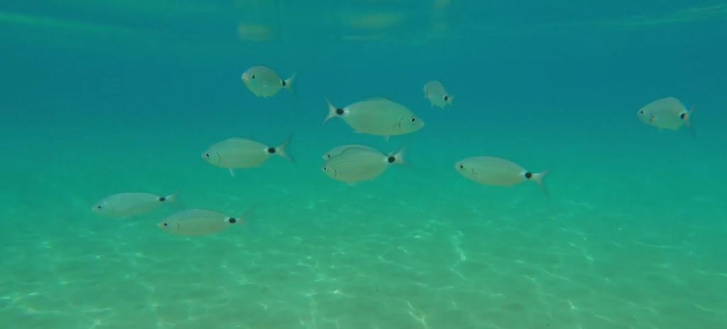 Mă rog, eu plajă am făcut mai puțin spre deloc, pentru că am descoperit o stâncă lângă care erau o mulțime de peștișori de toate felurile, așa că mai mult de două ore în fiecare dimineață i-am urmărit pe sub apă… mă rog, cât a ținut bateria gopro-ului de fiecare dată.