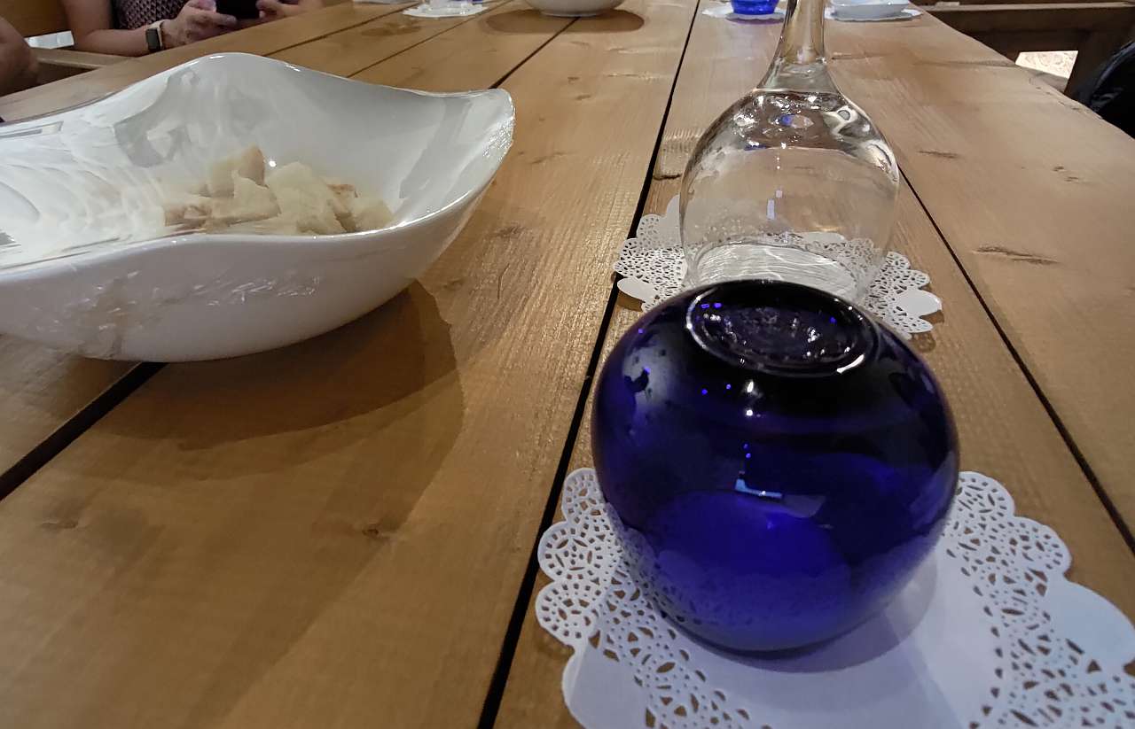 … apoi ne-a explicat de ce sunt albastre paharele de degustare, de ce nu sunt transparente.