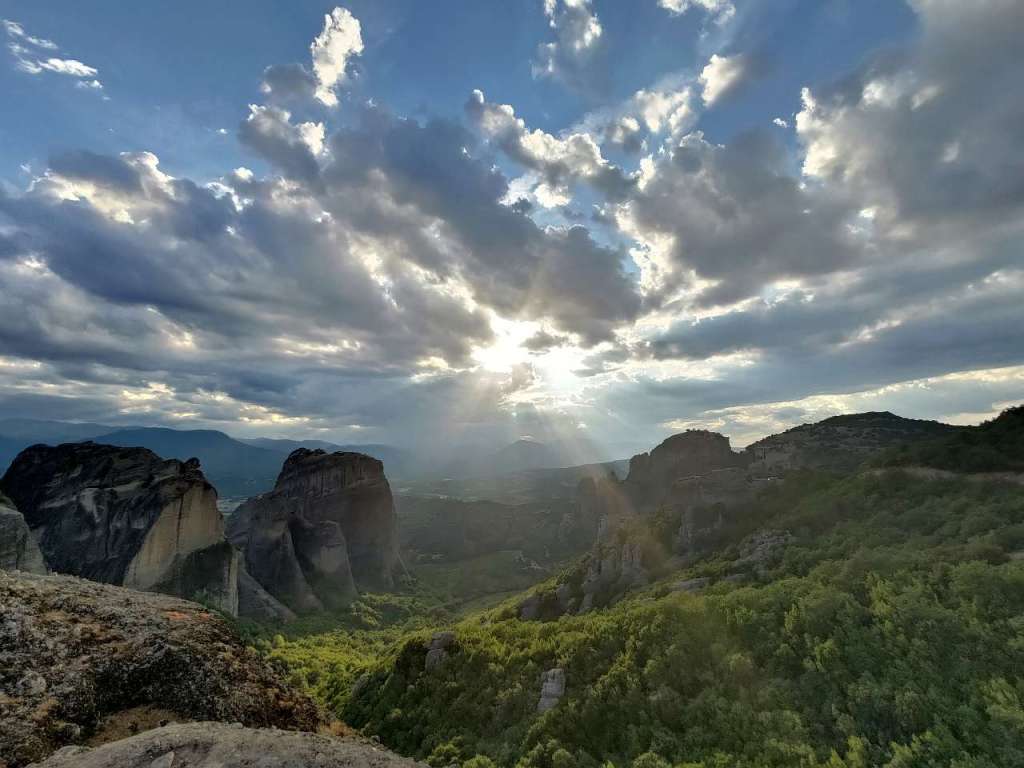 Dacă mergi la Meteora, în Grecia, musai să vezi și apusul de acolo, văzut de la unul dintre punctele de observație sau, de ce nu, de printre stâncile ca dintr-o altă lume…