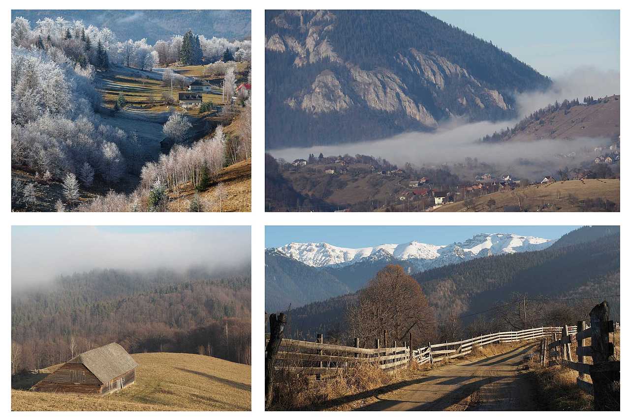Chiar și în decembrie vă puteți bucura de peisajele din pasul Rucăr Bran. Prin sătucele Șirnea și Șimon.