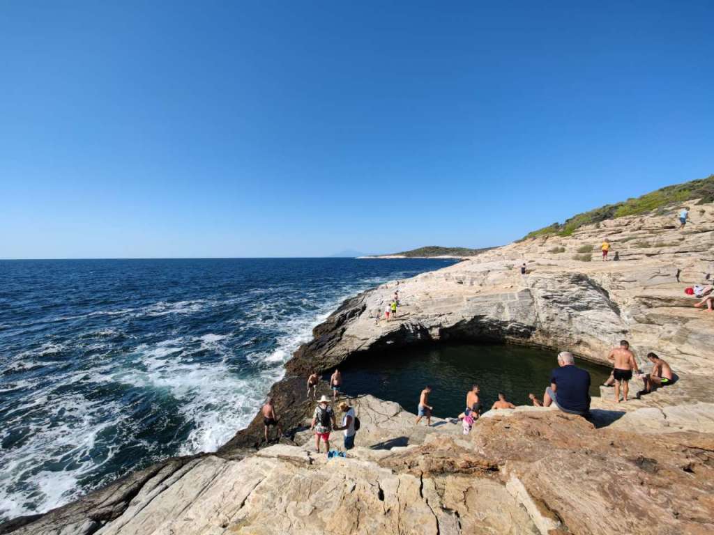 Am trecut pe lângă ele încercând să le vedem măcar dar parcările pline ochi ne-au gonit instant… Baia de mulțime din fiecare seară din Potos, Limenaria sau Panagia ne-au fost de ajuns. Da, suntem și noi un pic sălbatici dar avem o scuză… suntem sătui de aglomerația bucureșteană, măcar vreme de câteva zile să avem liniște…