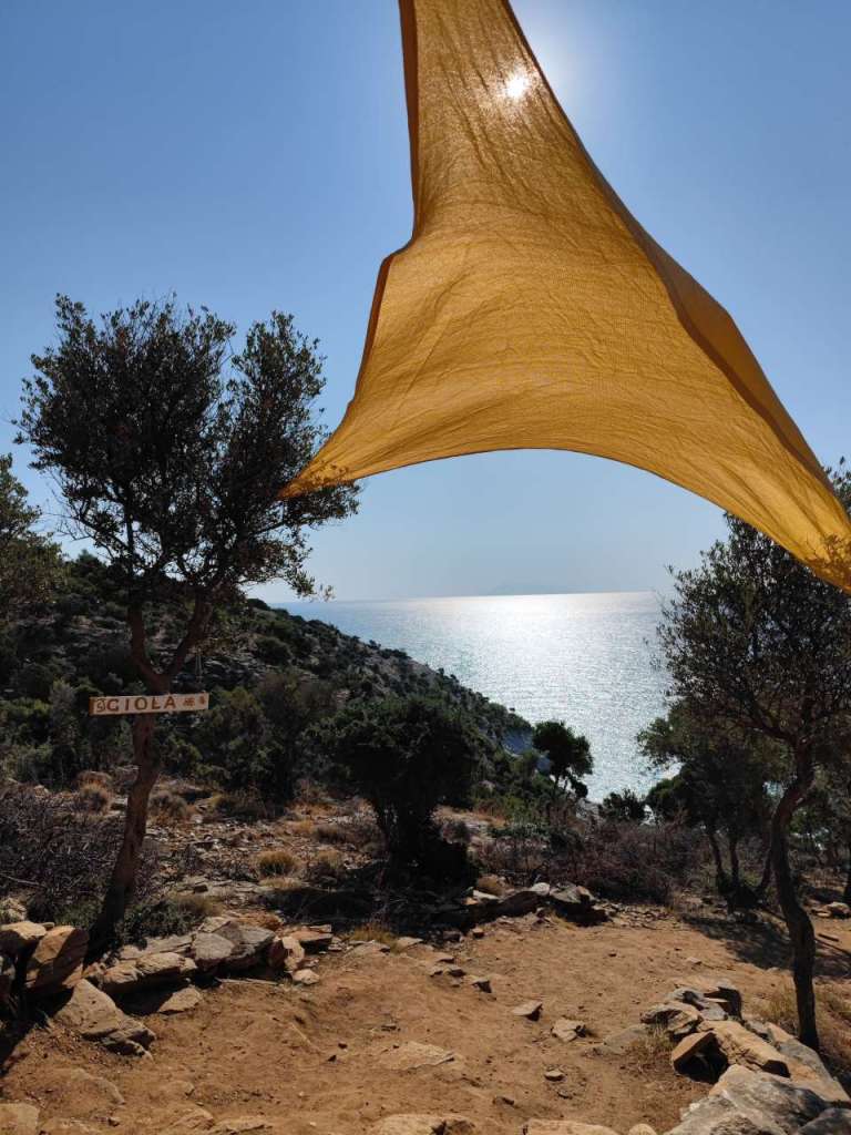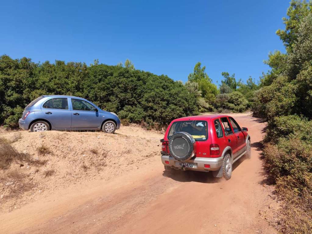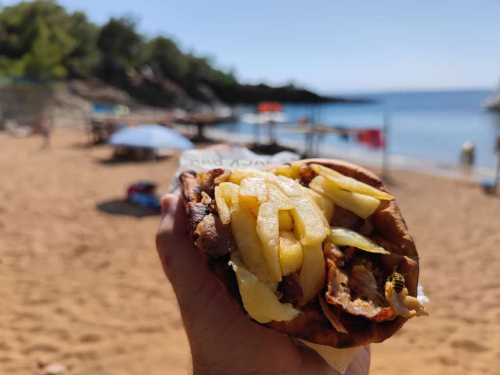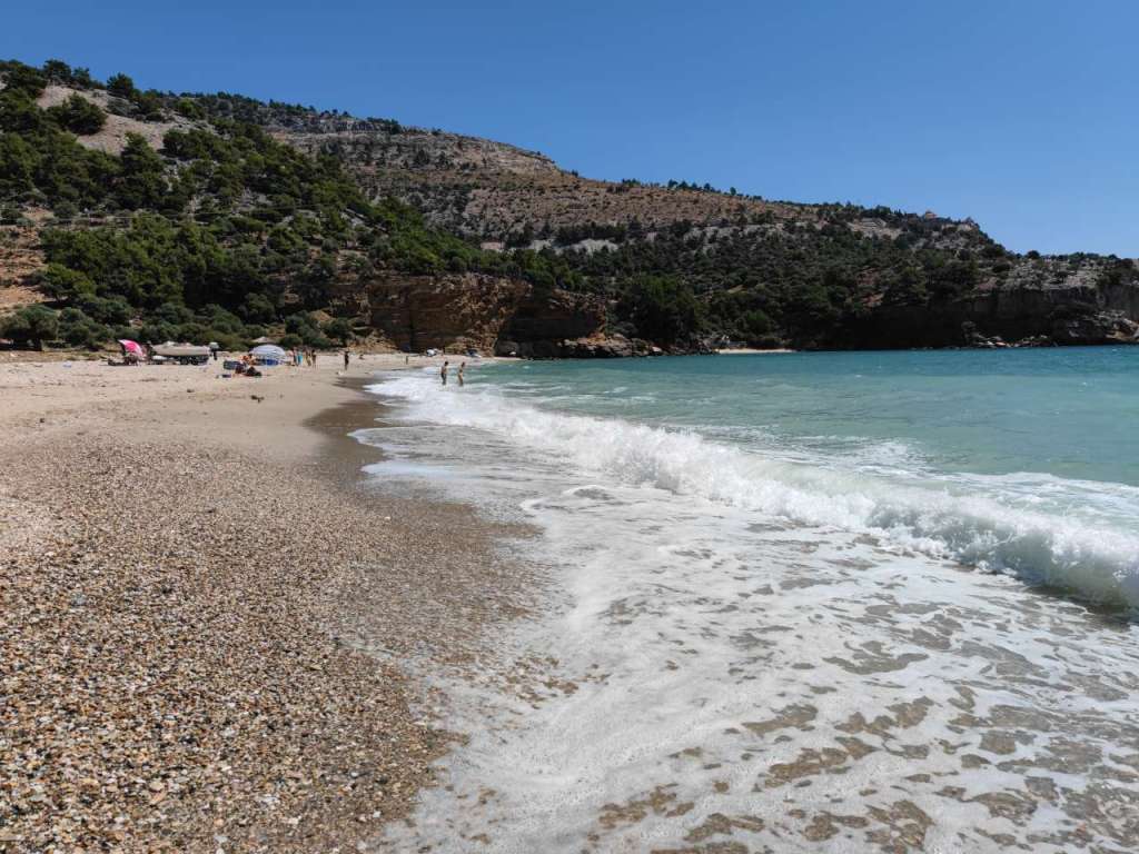 Am parcat mașina la umbră printre măslini și ne-am bucurat pentru câteva ore de liniște, soare, Mareea Egee cu ale sale valuri… Fără prea mulți turiști în jurul nostru, încă un plus din punctul nostru de vedere.