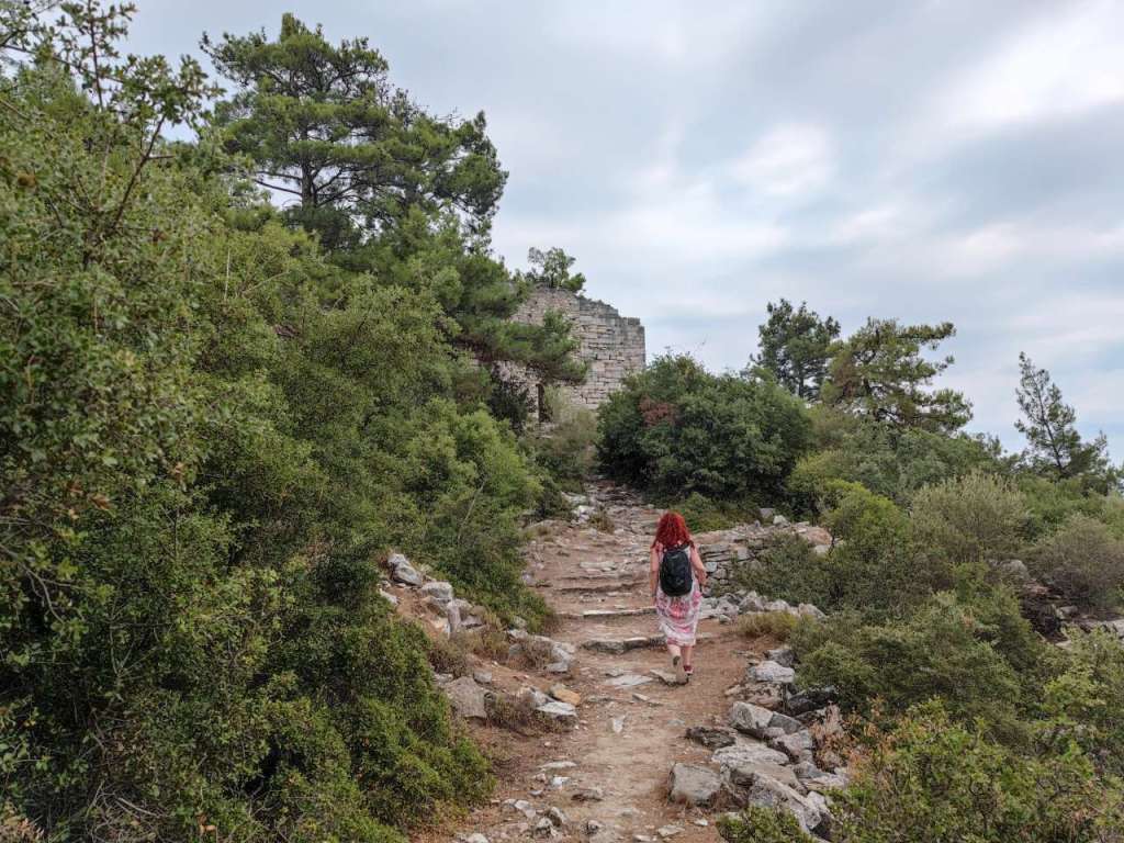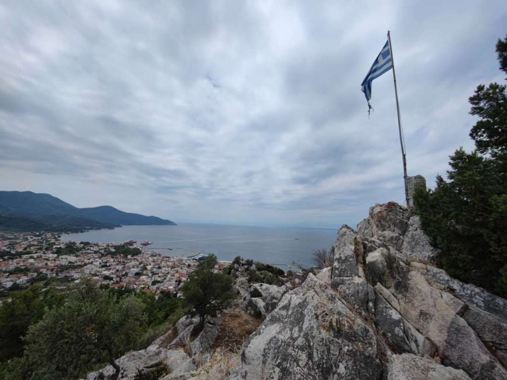 Încă de la început te atenționez să faci această scurtă drumeție într-o zi fără un soare dogoritor, să fii încălțat cum trebuie, nu în papuci, și să ai destulă apă cu tine. Dacă vrei să ajungi până sus, în vârful stâncilor, unde flutură steagul Greciei, vei depune ceva efort și îți vor curge ceva sudori pe spinare. Doar vreo 150 de metri diferență de nivel… dar într-o zi caldă de vară ai nevoie cu siguranță de hidratare. Noi am simțit lipsa apei din plin, am băut aproape 2 litri de apă plată la primul magazinaș când ne-am întors.