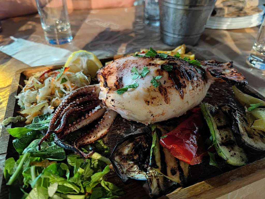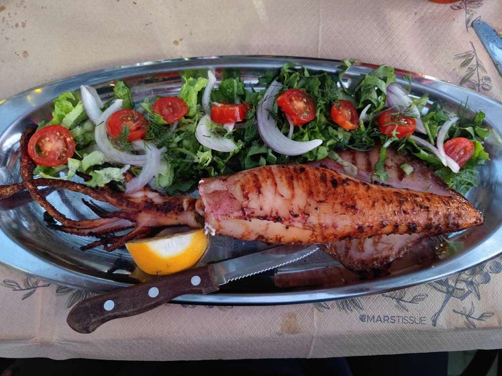 Dar, cel mai bun calamar umplut mâncat de mine până acum l-am devorat la taverna Kekes Beach Skidia. Nu a fost deloc ieftin dar a fost pur și simplu delicios. Carnea fragedă și gustoasă, crocantă la exterior și fragedă la interior… ditamai calamarul de puteai sătura două persoane din el…