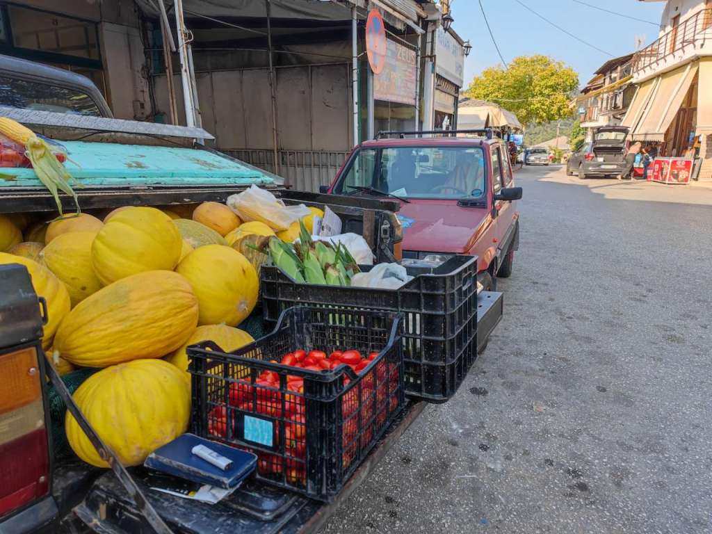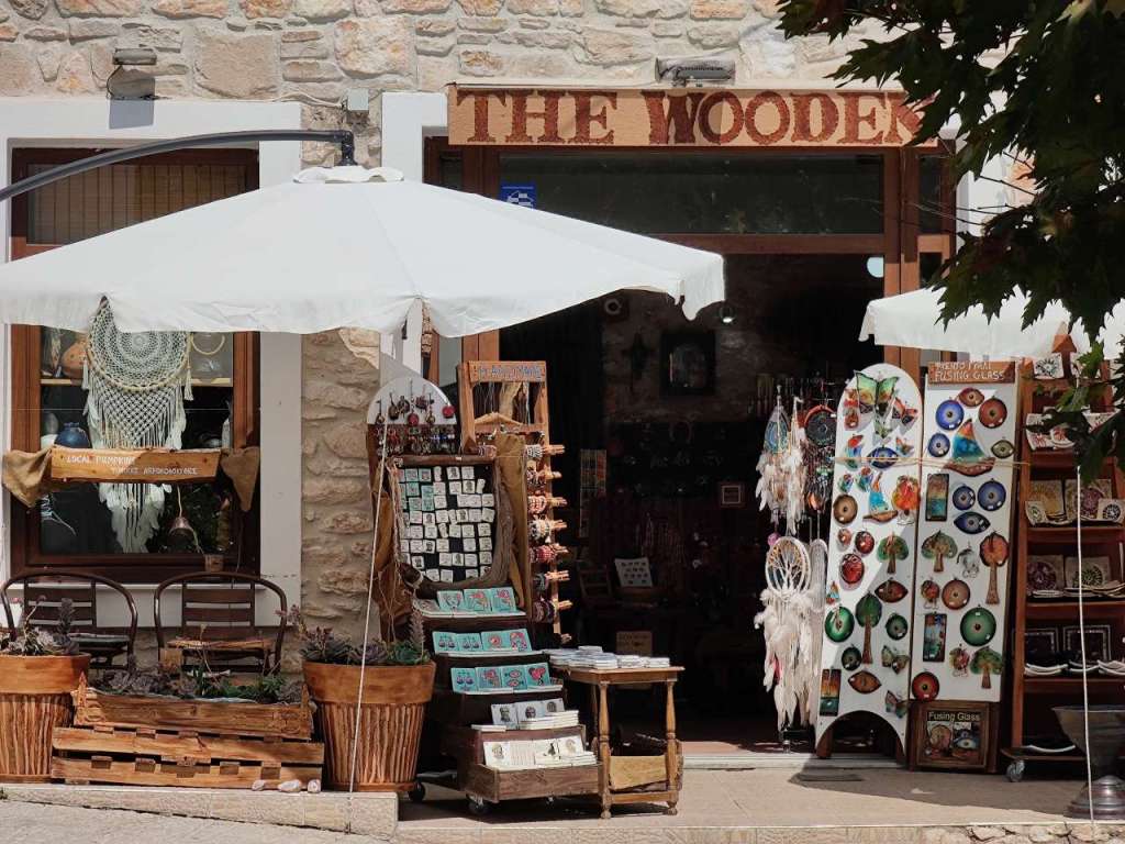 Case din piatră cu acoperiș din ardezie, taverne, magazine cu suveniruri, piețe cu platani, din nou, taverne și cafenele, frumos. Măsline deshidratate, ulei de măsline, dulcețuri de nucă verde, de smochine sau de portocale (delicioase de altfel), trei spârcuri de rahat în cutii supradimensionate pentru a păcăli, magneți etc etc etc.