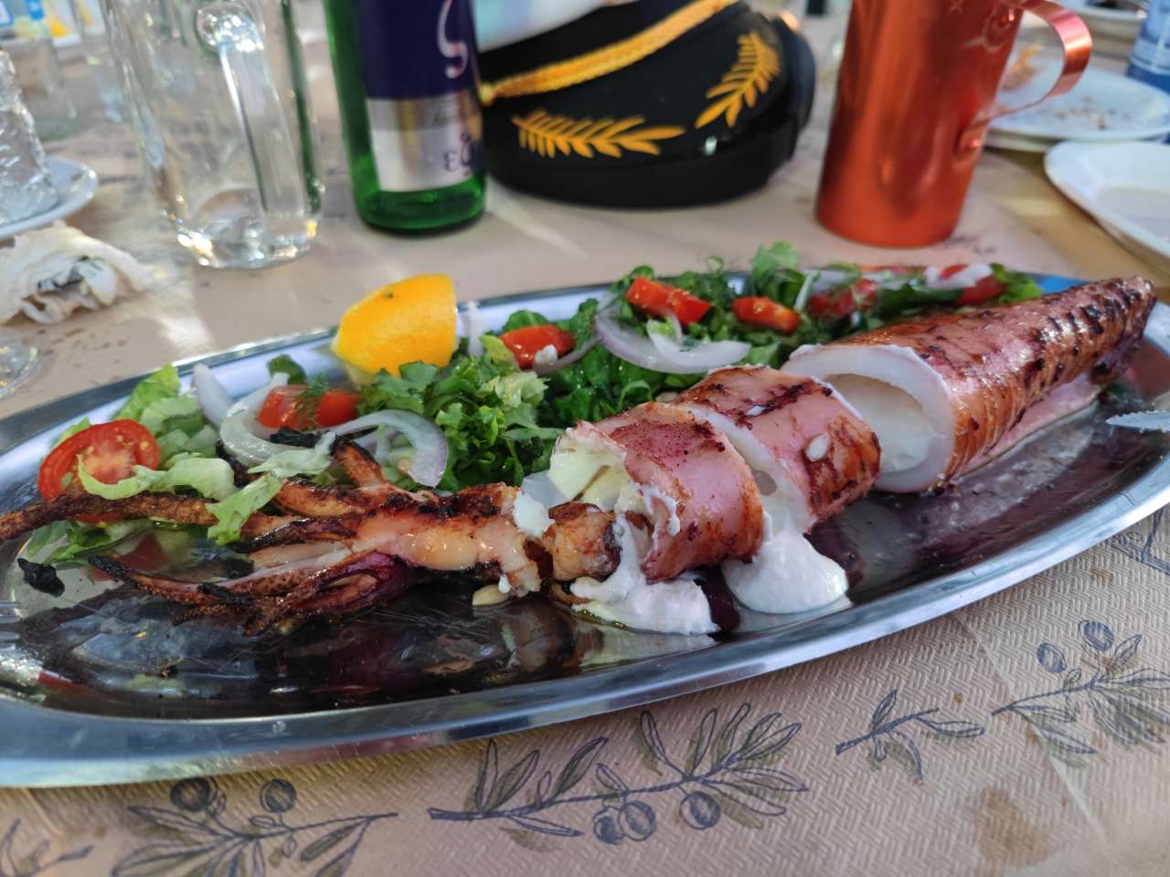 Dar, cel mai bun calamar umplut mâncat de mine până acum l-am devorat la taverna Kekes Beach Skidia. Nu a fost deloc ieftin dar a fost pur și simplu delicios. Carnea fragedă și gustoasă, crocantă la exterior și fragedă la interior… ditamai calamarul de puteai sătura două persoane din el…